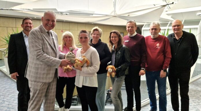 Jetzt konnten Ulrike Holst (Düsseler Tor), Silke Balk (Rohdenhaus) und Mareike Wahle (Kunterbunt) sich auch noch über 333 Euro Spende freuen. Die “Villa Kunterbunt” plant einen Erlebnispfad, für dessen Gestaltung die Spende gut gebraucht werden kann. Auch die Kita Rohdenhaus möchte in das Außengelände investieren. Am Düsseler Tor wird bereits gesammelt für ein neues Klettergerüst, das allerdings 30.000 Euro kosten soll. Die 333 Euro fließen in die Sammlung mit ein.