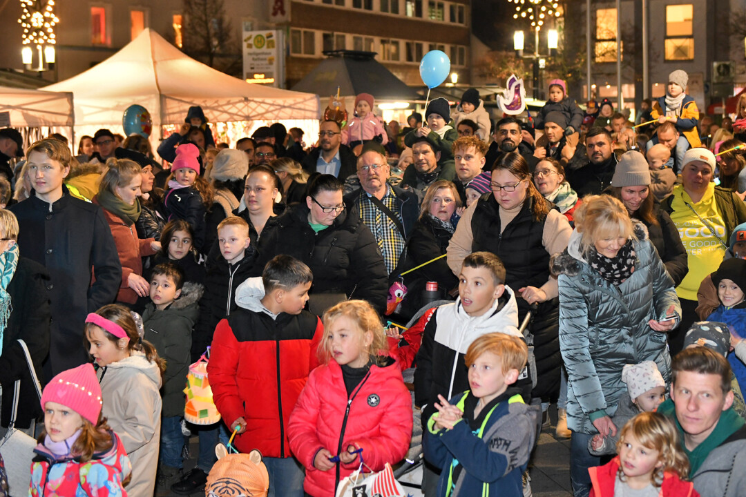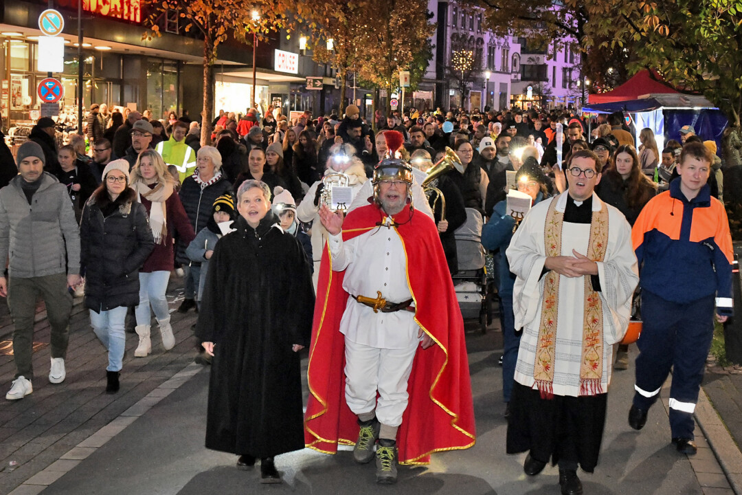 Der Höhepunkt des Tages ist der traditionelle Martinszug, der das Brauchtum hochleben lässt. Die Kinder versammeln sich ab 16.30 Uhr in der Schulstraße und ziehen von dort aus mit ihren Laternen durch die Innenstadt bis zum Rathausplatz. Schon bei der Aufstellung werden Martinslieder gespielt und gesungen – meist sehr zur Freude der Bewohner des dortigen Altenheims.