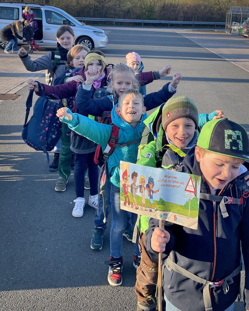Gemeinsam mit der Kita Hetterscheidt, der Polizei und vielen engagierten Eltern, Kindern und der Lehrerschaft wurde das “Laufteam” in den vergangenen Tagen begleitet und unterstützt. An den Treffpunkten am Parkplatz von Kaufland starteten die Gruppen und gingen sicher begleitet zur Schule.