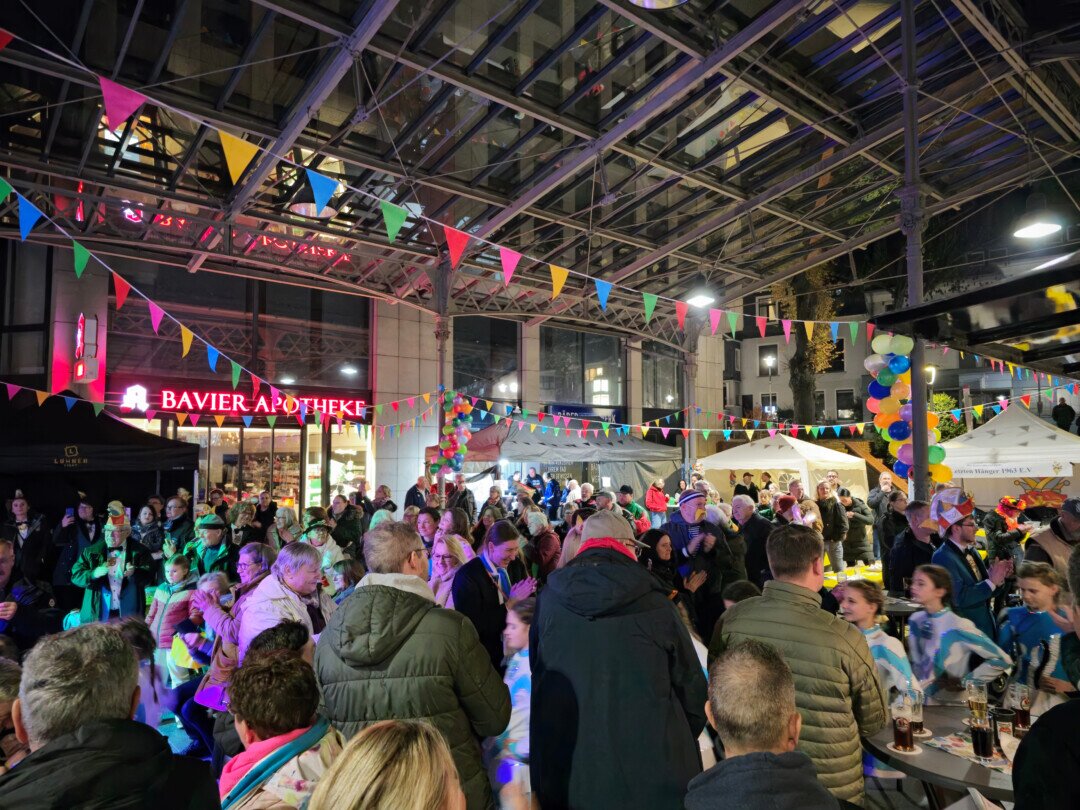 Für Verpflegung sorgten die Osteria Cristofaro mit italienischen Speisen, Rhenania Hochdahl mit Bratwurst und Pommes sowie ein Foodtruck mit Crêpes und Wein. Die Karnevalsvereine boten Glühwein, Cocktails und Kaltgetränke aus dem Bierwagen an.