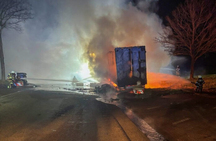 Der wirtschaftliche Schaden des völlig ausgebrannten Lkw, der mit Pappe beladen war, wird auf eine Summe von rund 300.000 Euro geschätzt.