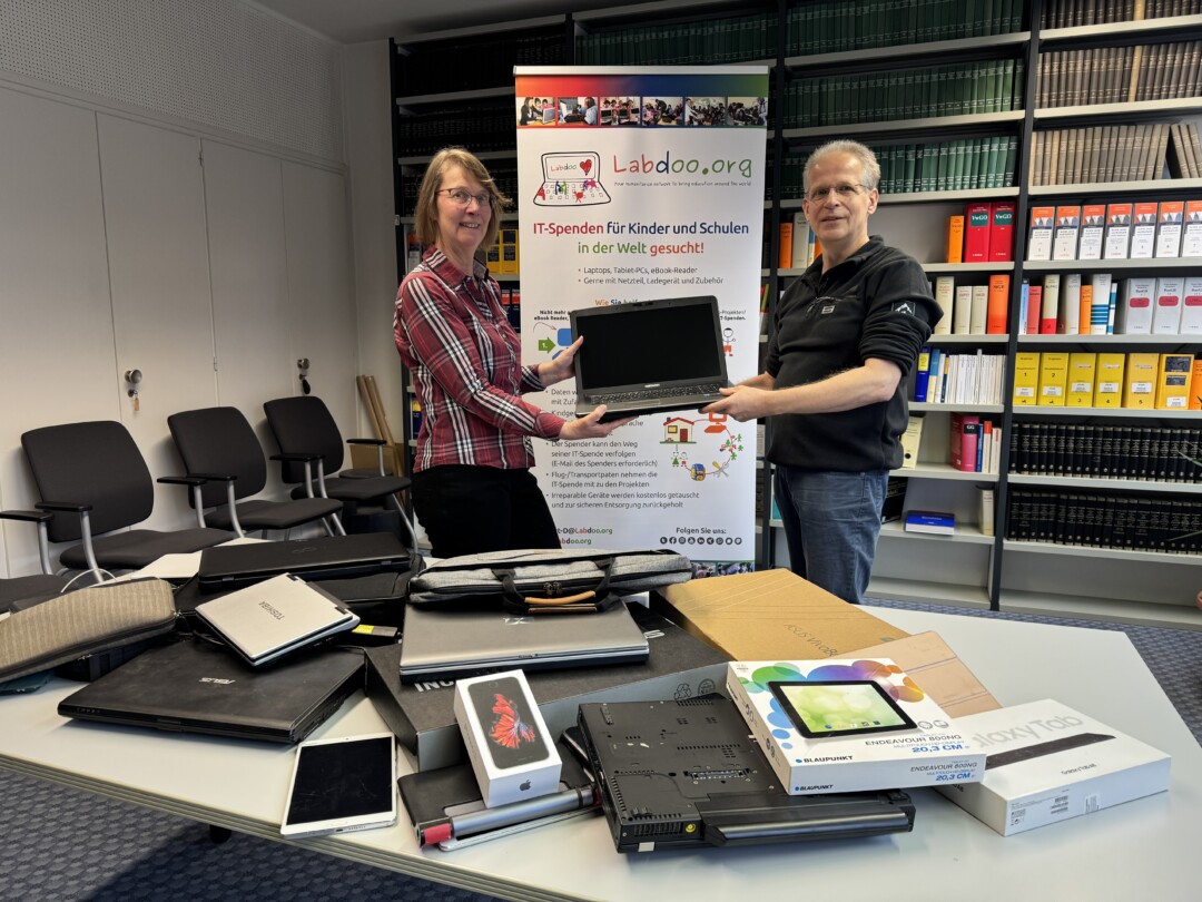 Die Geräte werden von den ehrenamtlichen Mitarbeitenden von Labdoo für die Weiterverwendung aufgearbeitet. „Herzlichen Dank für die IT-Spenden für Labdoo. Damit schenken wir den Geräten nicht nur ein zweites Leben, sondern eröffnen Kindern und jungen Erwachsenen neue Chancen auf Bildung und digitale Teilhabe im In- und Ausland“, freut sich Beatrice Waldapfel, Abfallberaterin des Kreises. Viele der Geräte sehen fast wie neu aus und sind noch voll funktionstüchtig, nur leider nicht mehr updatefähig. Eine Frau berichte, dass sie sich ein Tablet gekauft habe und nicht mit der komplizierten Technik umgehen könne; deswegen wolle sie jetzt ihr neues Tablet für eine gute Sache spenden. Andere nahmen den Weg sogar aus Haan, Hilden, Wülfrath und Langenfeld auf sich, um ihre Spende im Kreishaus abzugeben. Ein Mann stand mit einem Koffer vor dem Büro der Abfallberaterin und brachte sechs Laptops auf einmal vorbei. Auch die Kolleginnen und Kollegen aus der Kreisverwaltung Mettmann waren spendabel. Etwa die Hälfte der Spenden kamen von den eigenen Kolleginnen und Kollegen.