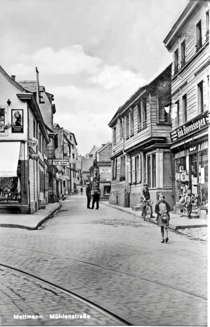 Dieses Bild zeigt eine historische Ansicht der Mühlenstraße in Mettmann. Foto: Archiv Aule Mettmanner bearbeitet von Ingo Grenzstein