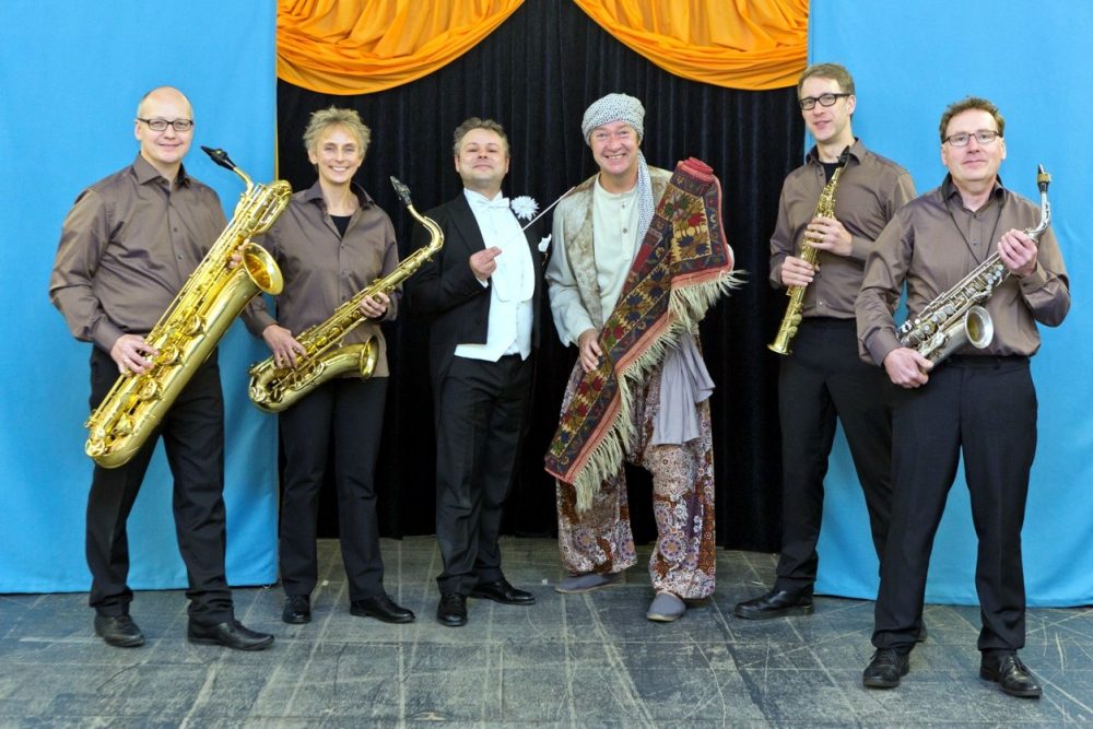 Das „Pindakaas Saxophon-Quartett“ führt in Koproduktion mit dem Theater „Scintilla“ das Musikmärchen „Alla Turca oder Der Dirigent und sein Flaschengeist“ auf. Foto: Veranstalter