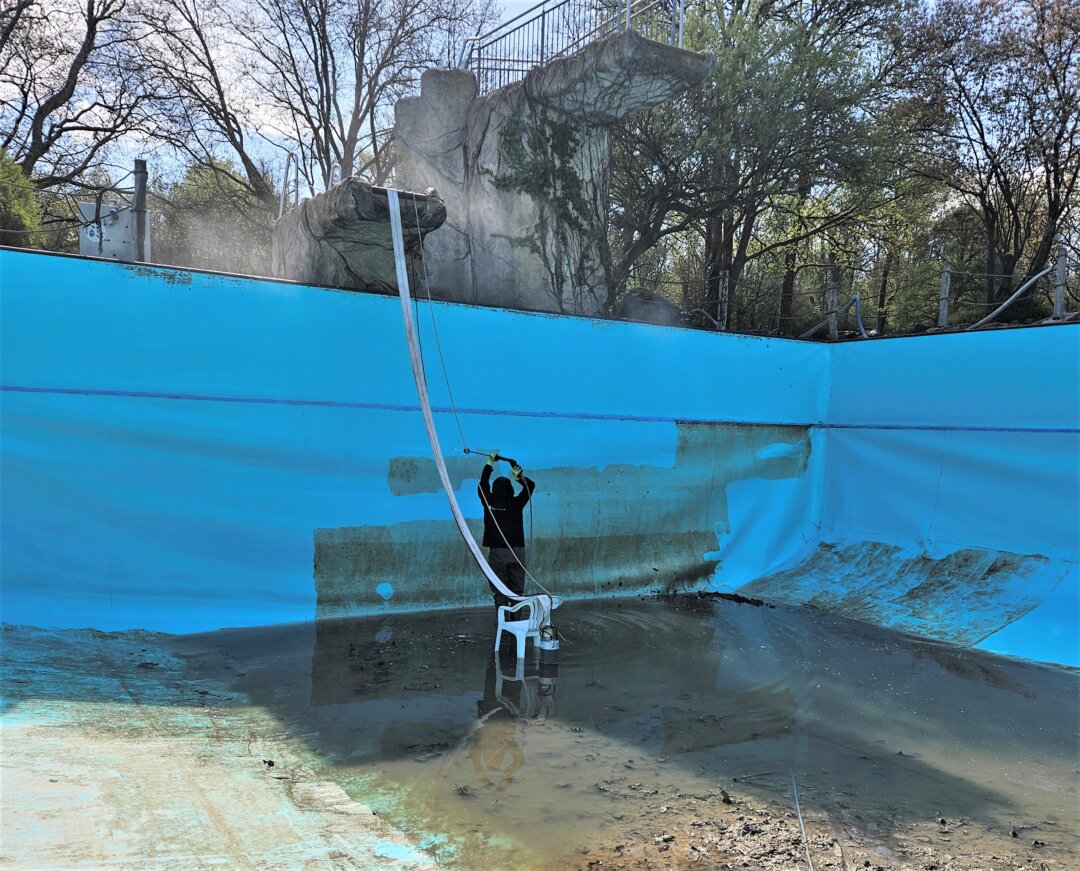 Als tiefster Bereich wird die Sprunggrube zum Schluss bearbeitet, da sich dort während der Reinigungsarbeiten die Ablagerungen sammeln. Diese werden Anfang kommender Woche abgepumpt und fachgerecht entsorgt. Im Anschluss folgen anspruchsvolle Reparaturarbeiten. An