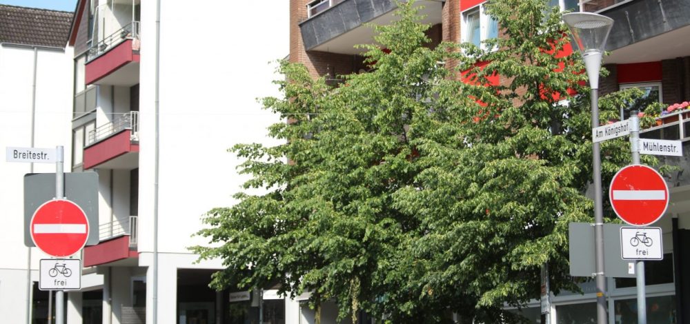 Das alte, marode „Waschbrett“ wird durch ein Platanendach ersetzt und der kleine Platz neu angelegt. Beide Maßnahmen sind Bestandteil des Integrierten Handlungskonzepts Innenstadt, das vom Land gefördert wird.