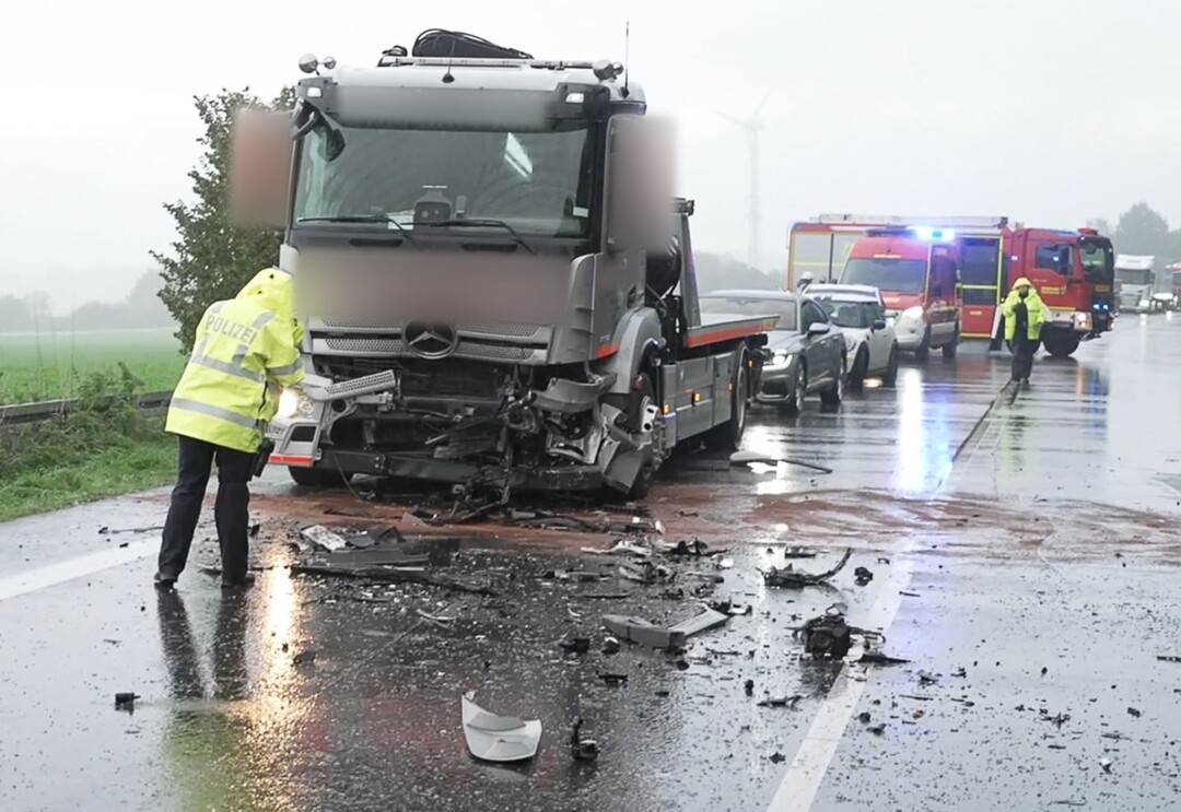 Auch der Lkw-Fahrer sei leicht verletzt und vorsorglich ins Krankenhaus gebracht worden, sagte die Polizeisprecherin. Er steht demnach unter Schock, ebenso wie eine Autofahrerin, die Zeugin des Unfalls war, aber unverletzt blieb.