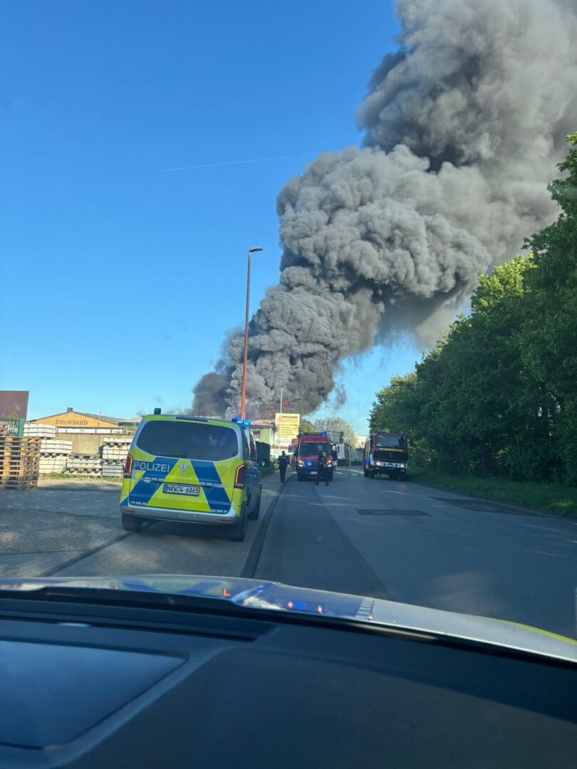 Grevenbroich (dpa/lnw) – Ein Brand auf dem Gelände eines Schrotthofs in Grevenbroich hat erhebliche Rauchentwicklung verursacht und einen Großalarm ausgelöst. Für das Stadtgebiet Grevenbroich sowie Teile der Nachbarkommunen Jüchen und Rommerskirchen werden die Bewohner vor den Rauchgasen gewarnt, teilte die Feuerwehr mit.