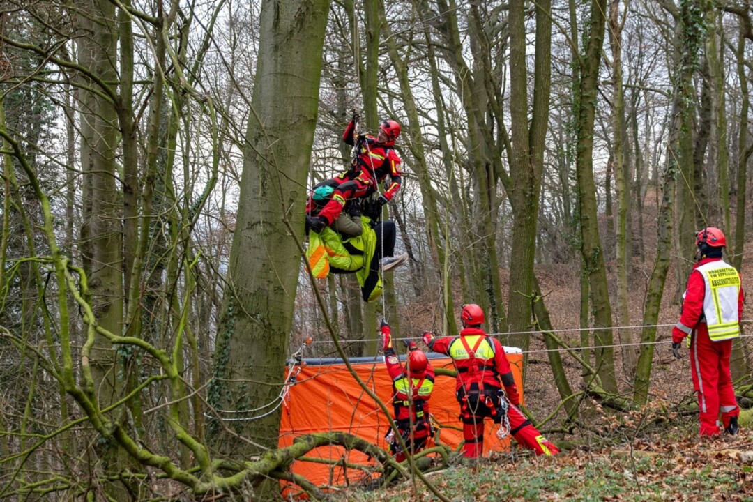 Wanderer hatten den Absturz in der Nähe der Wittkindsburg beobachtet und die Rettungskräfte alarmiert. Höhenretter der Feuerwehr Espelkamp sicherten den Mann und seilten ihn langsam ab. Ins Krankenhaus musste er nicht, wie ein Notarzt feststellte. «Außer einem Cut am Auge war der Absturz glimpflich verlaufen», so der Sprecher. Nach insgesamt rund drei Stunden war der Mann wieder auf sicherem Boden.