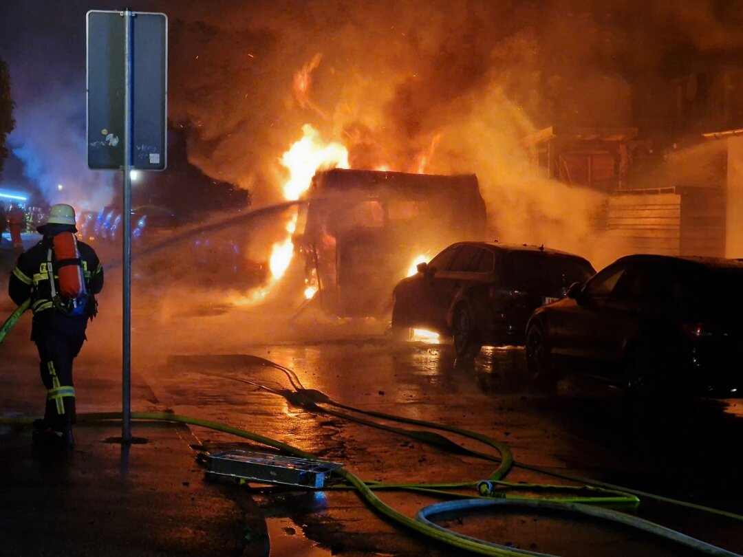 Ein Wohnmobil ist in Unna völlig ausgebrannt. Die Polizei vermutet Brandstiftung.