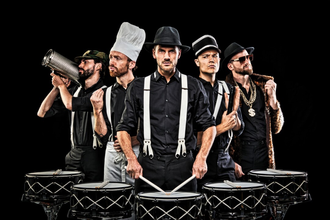 Fünf charismatische Schlagzeuger verwandeln die Bühne in ein lebendiges Klanglabor, in dem alles zum Instrument werden kann: Trommeln, Alltagsgegenstände – und manchmal sogar das Publikum. Mit handwerklicher Präzision, feinem Timing und spürbarer Spielfreude treiben sie ihre Beats voran und ziehen das Publikum vom ersten Schlag an in ihren Bann.