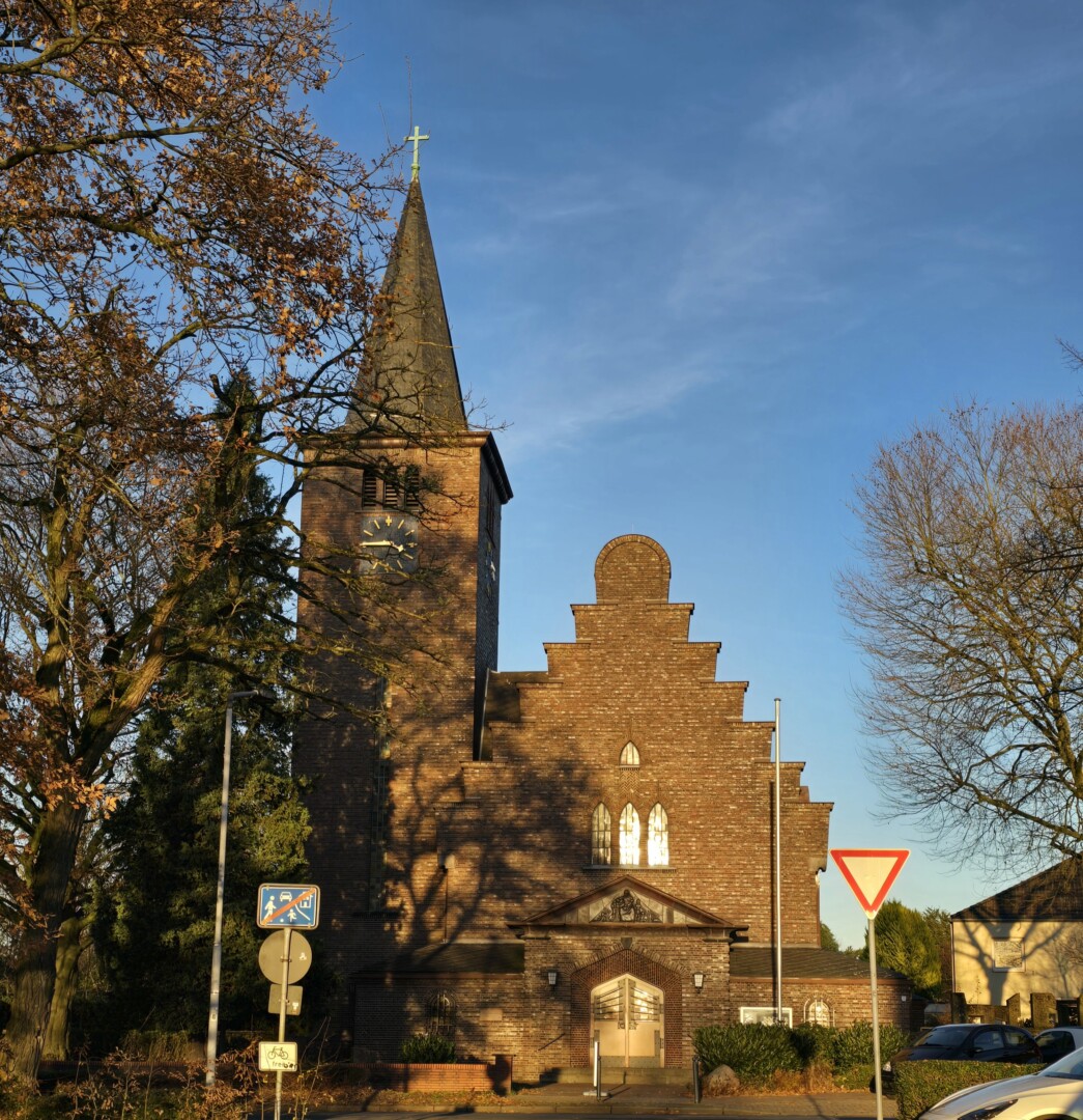 Leicht zu finden, das Gemeindezentrum befindet sich direkt neben der markanten Adolf Clarenbach Kirche im Tentrum von Hösel, Bild: Alexander Heinz