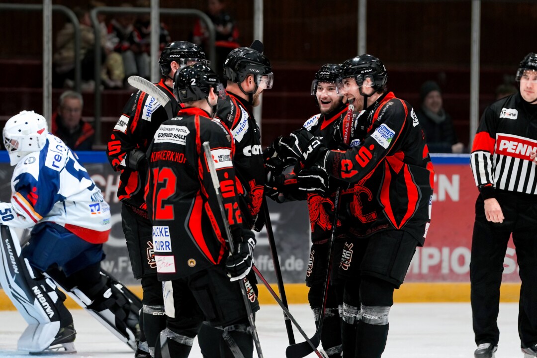 Torschützen für Ratingen: Mathias Rakell, Bryce Irwin, Leonardo Stroh (je 3), Alexej Dmitriev (2), Mathias Onkels, Maik Klingsporn (je 1)