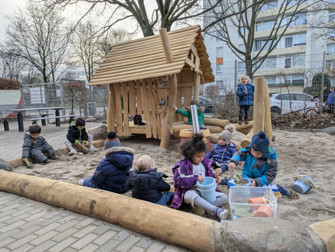 Die Stadt Ratingen hat rund 45.000 Euro in die Erneuerung der Außenanlage investiert. Jetzt freuen sich die Familien auf gutes Wetter und darauf, Blumen in die neue Pflanzfläche zu säen.