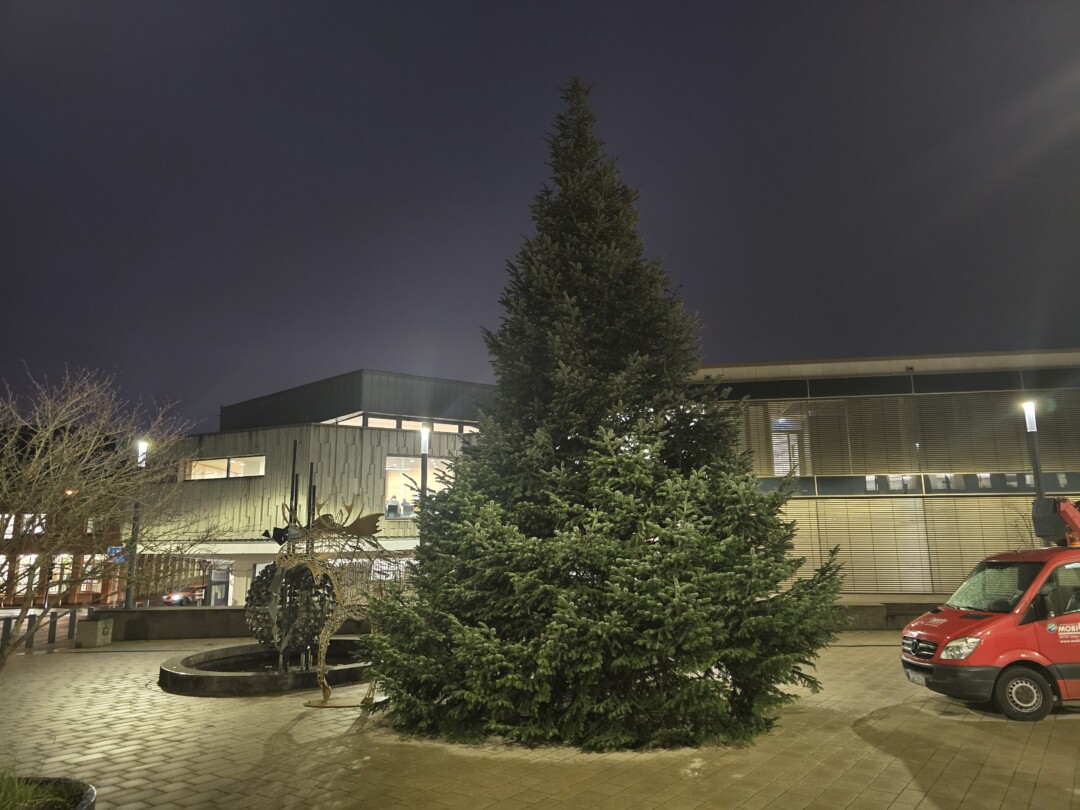 Die Vorbereitungen laufen, noch sind die Bäume in Ratingen ohne Beleuchtung, aber das ändert sich bald ! Bild: Der Baum vor dem Rathaus, Alexander Heinz