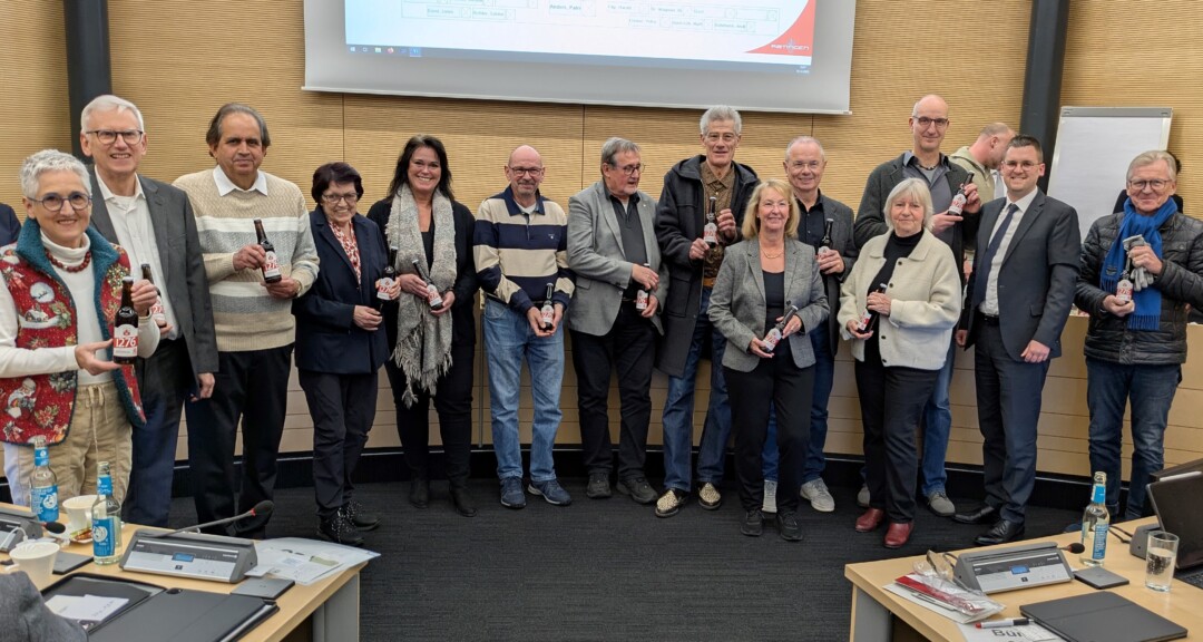 Als Geste des Danks und zugleich als Appetizer auf das bevorstehende Stadtjubiläumsjahr 2026 überreichte Anders ihnen je eine Flasche des frisch gebrauten Jubiläumsbiers „1276“.