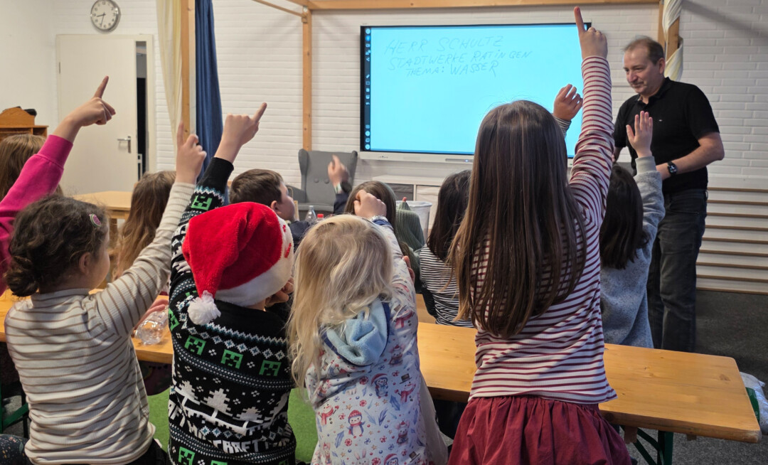 Wofür benötigen wir Trinkwasser? Wie viel Wasser verbrauchen wir täglich? Woher stammt unser Trinkwasser und wie wird aus Grundwasser reines Trinkwasser? Diesen und vielen weiteren Fragen geht Carsten Schultz von der Deutschen Umwelt-Aktion im Schuljahr 25/26 in insgesamt sieben Ratinger Grundschulen nach – und beantwortet sie gemeinsam mit den Schülerinnen und Schülern.