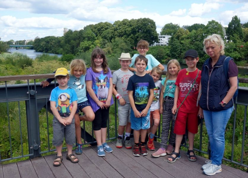 Auf der Ruhrbrücke am Wasserkraftwerk Kahlenberg versammelten sich die Dumeklemmer-Kinder schließlich zu einem Gruppenbild, das sie an diesen Ferientag erinnern wird.