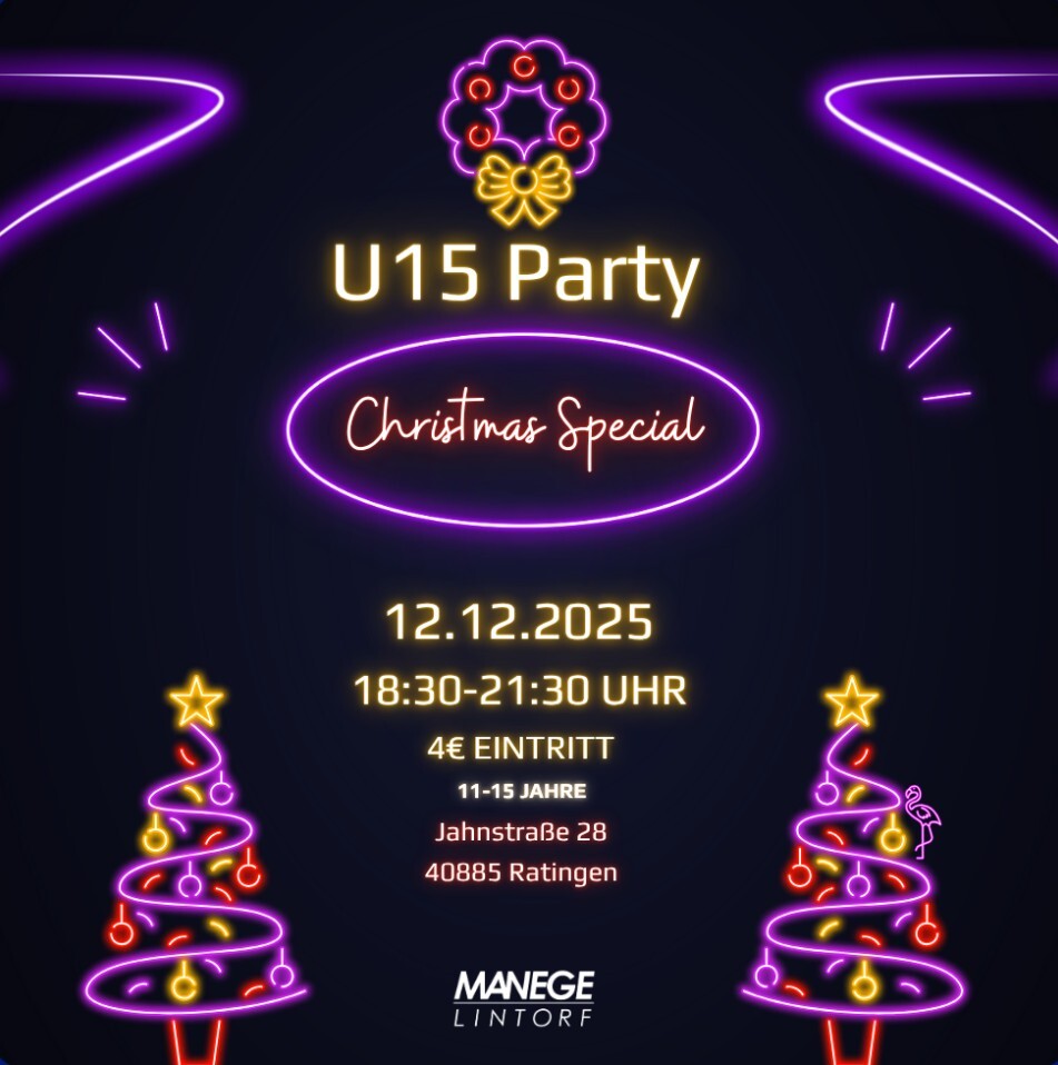 Ratingen | In eine festliche Weihnachtswelt verwandelt sich das Jugendzentrum Manege Lintorf am Freitag, 12. Dezember: Dann steigt von 18.30 bis 21.30 Uhr die große U15-Christmas-Special-Party für alle Jugendlichen zwischen elf und 15 Jahren! Mit winterlicher Deko, bei cooler Musik und einer Menge vorweihnachtlicher Stimmung erwartet die Gäste ein Abend voller Spaß. Besonderes Highlight sind die liebevoll gestaltete Kakao-Bar mit verschiedenen Toppings sowie ein süßer Candy-Stand. Das Manege-Team freut sich auf einen stimmungsvollen Abend mit vielen gut gelaunten Jugendlichen, ganz im Zeichen der Vorweihnachtszeit.
