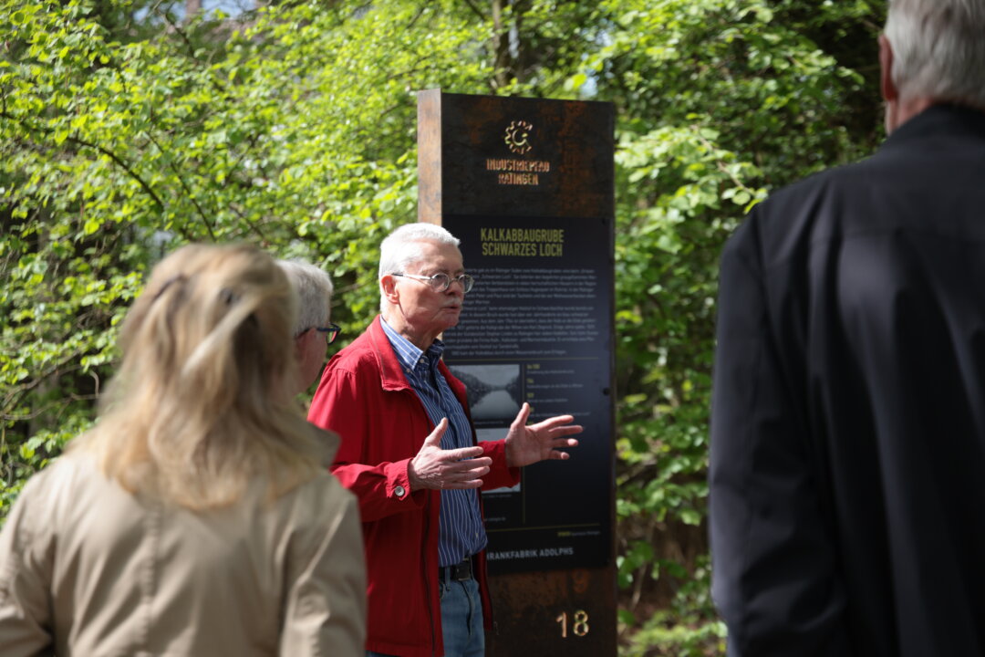 Eine weitere Station befasst sich mit dem Bereich Schwarzes Loch und grieses Loch. Dort stand die Geschichte des Kalkabbaus im Mittelpunkt. Deutlich wurde, dass die wirtschaftliche Entwicklung Ratingens nicht erst mit klassischen Fabrikstandorten begann, sondern bereits früher mit Rohstoffgewinnung, Brennöfen und Transportwegen verbunden war.