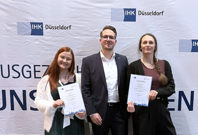 „Auf diese außerordentlichen Leistungen sind wir stolz. Dass zwei unserer Nachwuchskräfte die Abschlussprüfung der IHK als einer der Besten absolvieren konnten, zeugt von ihrer hohen Motivation und ihrer großen Zufriedenheit mit dem von ihnen ergriffenen Beruf“, betont Nina Herter. Positiv auf das hervorragende Abschneiden ausgewirkt hat sich ihrer Ansicht nach auch der hohe Ausbildungsstandard.