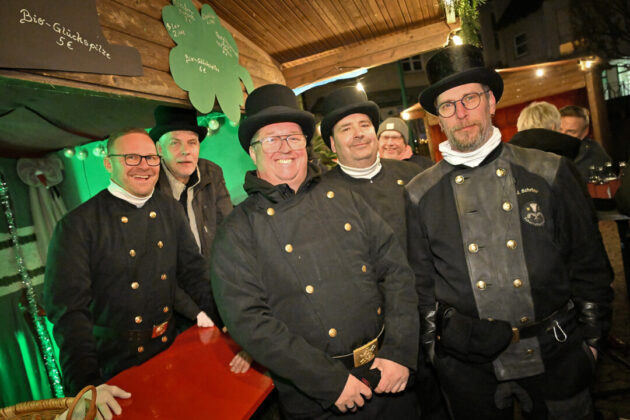 Unter die Stände haben sich auch Schornsteinfeger gemischt. Obwohl sie in unterschiedlichen Kehrbezirken unterwegs sind, verbinde sie die gemeinsame Heimat im Umkreis von Tönisheide, berichtete einer der Männer in schwarzem Anzug und Zylinder. Sie gelten als Glücksbringer – und ihr Glück kommt in diesem Fall dem Tierheim Velbert zugute, denn alle Einnahmen aus ihrem Stand fließen dorthin. Auch die Einnahmen am Stand der Kirchengemeinde sind für einen guten Zweck bestimmt.