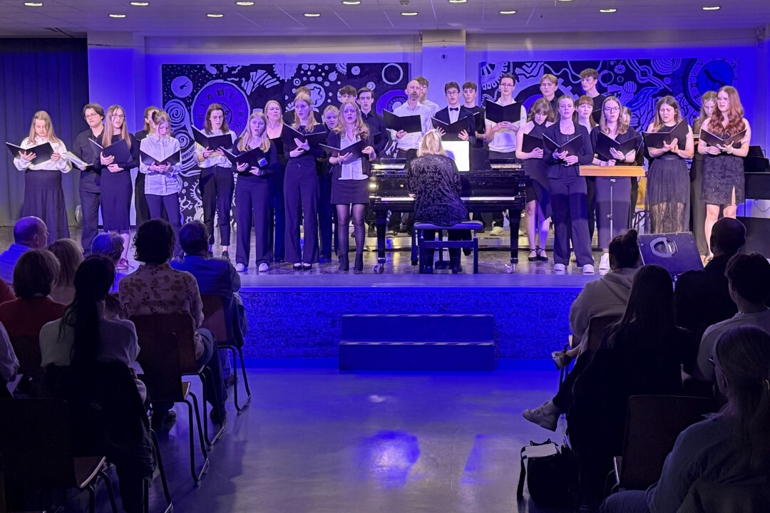Das Programm gestalteten die verschiedenen Schulchöre. Darunter der Projektchor bestehend aus Eltern, Ehemaligen, Schüler und Lehrern, die an ausgewählten Wochenenden miteinander proben. Außerdem der Pausenchor, mit Schülern und Lehrern, die sich während der Schulpausen zum Singen treffen, und der Musik-Q1-Kurs. Alle Gruppen stehen unter der Leitung von Susanne Ottner.