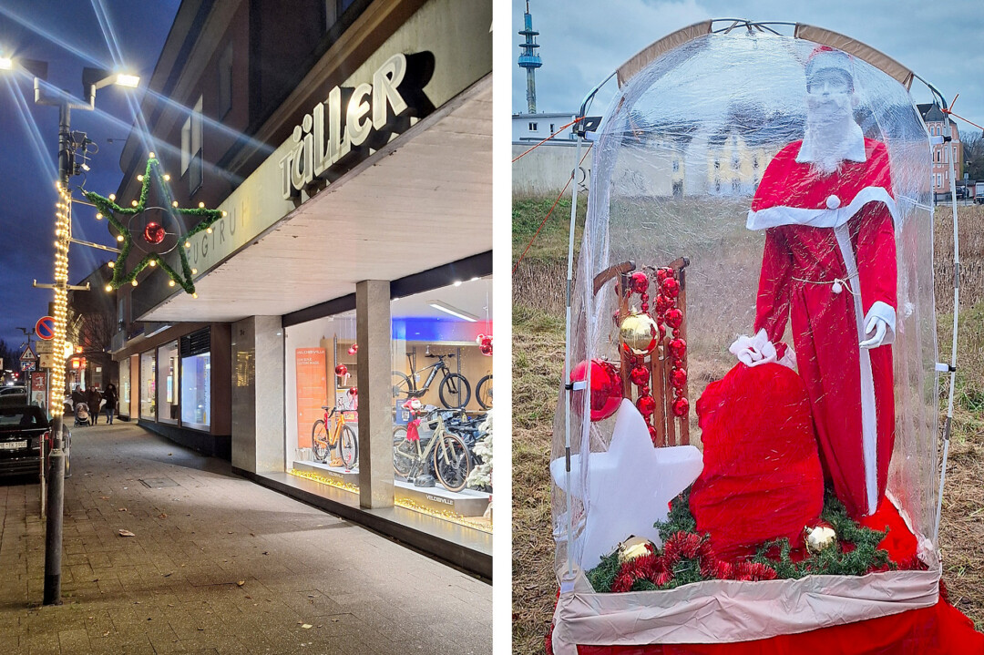 Eine besondere Ergänzung bildet die Dekoration auf dem ehemaligen Hertie-Grundstück an der Ecke Grünstraße/Friedrichstraße: Dort wurde eine Nikolaus-Figur aufgestellt. Die Beleuchtung dieses Nikolaus-Motivs auf dem städtischen Grundstück wird in Kürze noch fertiggestellt.