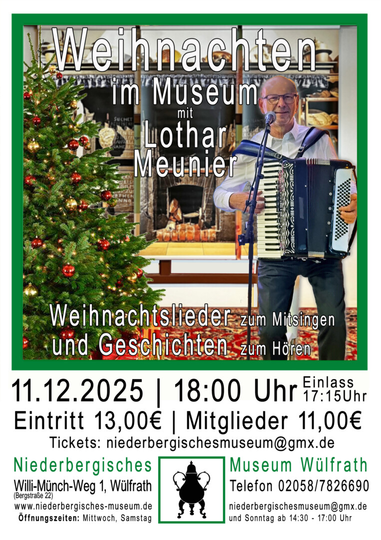 Wülfrath. Das Museum lädt ein zu einer Adventsfeier. Gast ist Lothar Müller mit dem Akkordeon.