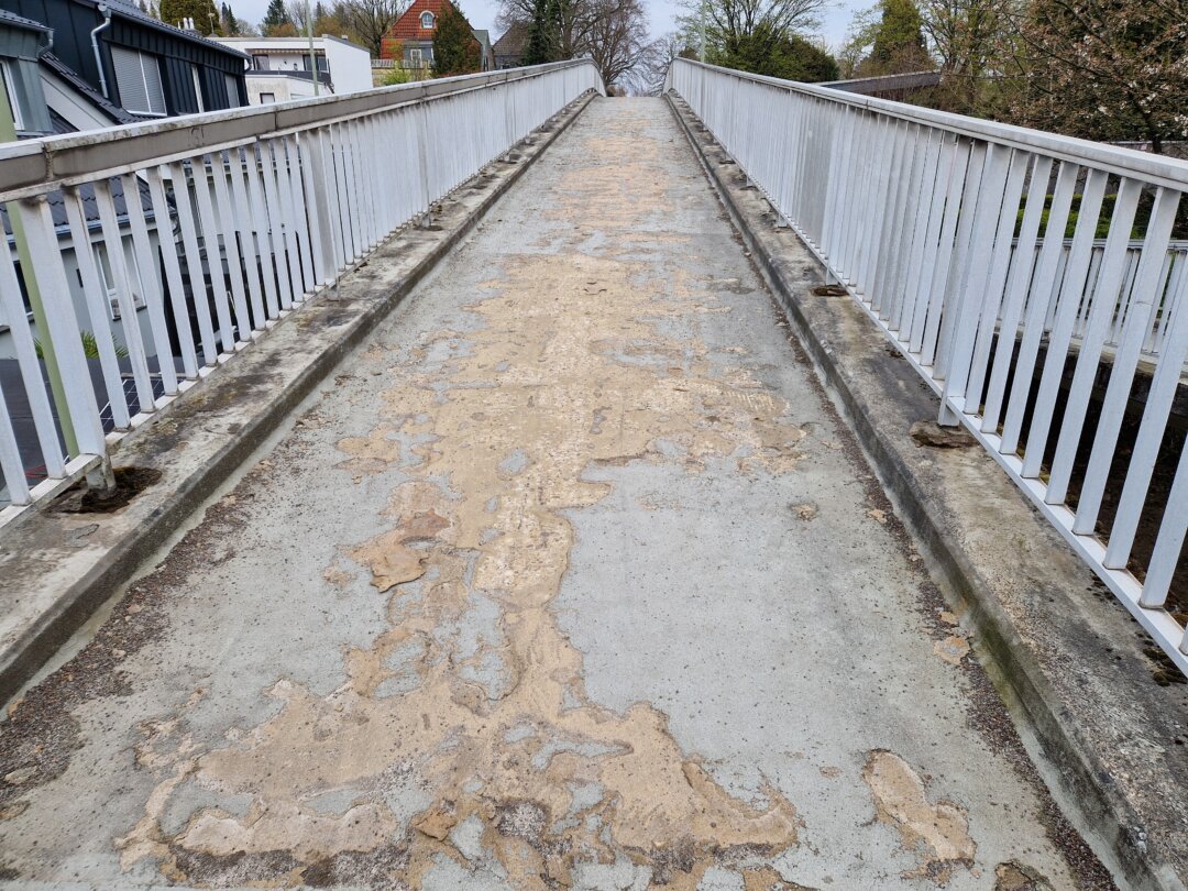 Die erste Brücke im Bereich Bergstraße – Zur Loev werde voraussichtlich am kommenden Montag im Laufe des Tages wieder für Fußgängerinnen und Fußgänger freigegeben. Damit sei der erste Sanierungsabschnitt abgeschlossen.