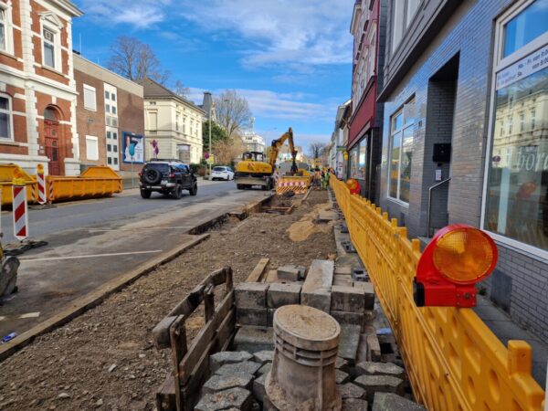 Zu Beginn dieses Abschnitts erfolgen die Arbeiten ausschließlich im Gehweg vor den Objekten Wilhelmstraße 109 bis 95. In diesem Bereich kann es zu Behinderungen kommen, ein Durchgang ist jedoch jederzeit gewährleistet.