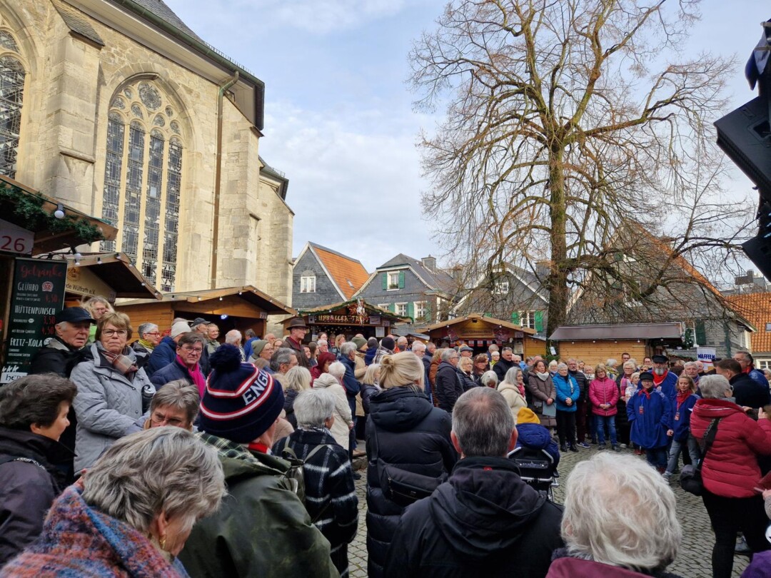 Auf dem Kirchplatz begrüßte der neue Bürgermeister Sebastian Schorn so viele Besucherinnen und Besucher, dass es vor der Bühne kein Durchkommen gab. „Ich freue mich sehr, Sie heute zur Eröffnung des 49. Herzog-Wilhelm-Marktes begrüßen zu dürfen. Auch in diesem Jahr erstrahlt der Kirchplatz im vorweihnachtlichen Glanz – mit allem, was diesen Markt seit Jahrzehnten so besonders macht“, sagte Schorn.