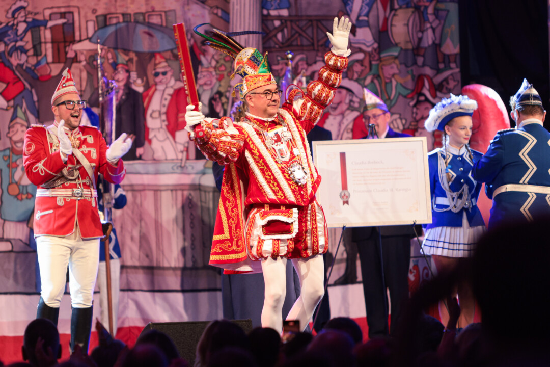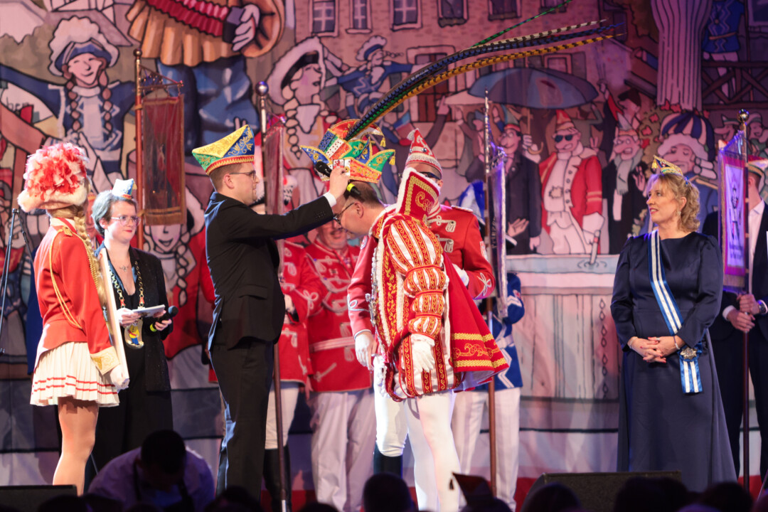 Ratingen. Am Samstagabend, 15. November, ist in der ausverkauften Stadthalle in Ratingen das neue Prinzenpaar der kommenden Session feierlich gekürt worden: Jörg I. und Claudia III. übernehmen das närrische Zepter. Bürgermeister Patrick Anders verlieh ihnen mit großem Applaus die Insignien der Macht.