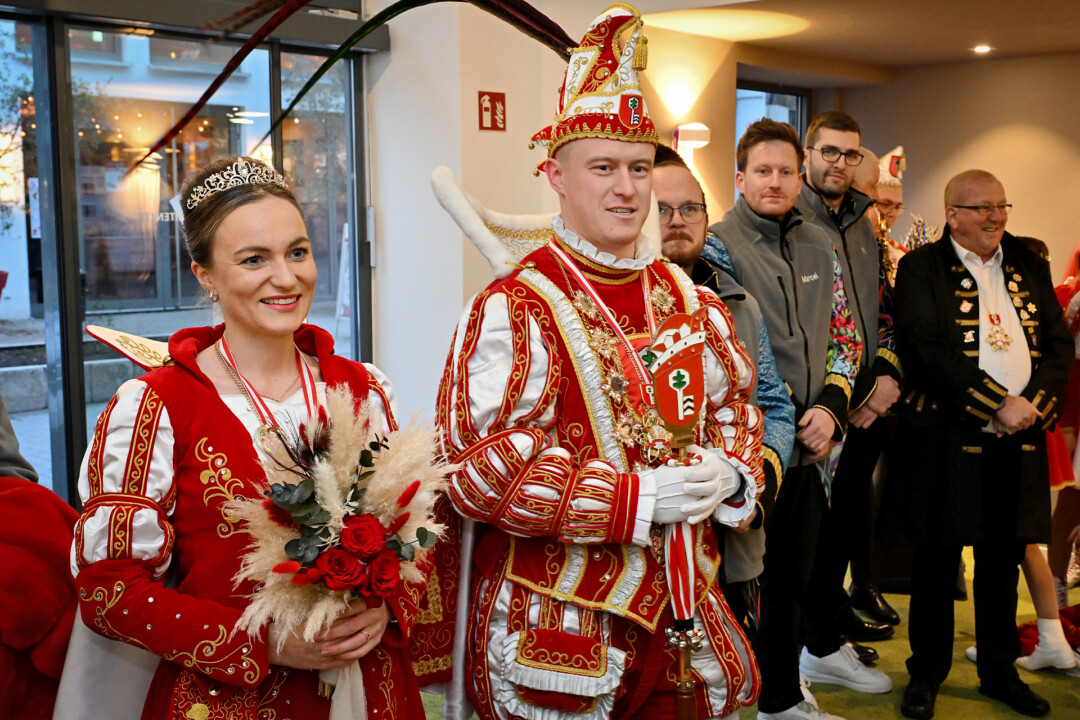 Dass das Stadtprinzenpaar zusammengefunden hat, ist einem Zufall zu verdanken: Ein Urlaub mit dem Fußballteam hatte Julian I. in seine jetzige Rolle gebracht. Vor sechs Jahren sei er überhaupt erst “in den Karneval hineingerutscht”, damals als Adjutant. Bis zum Spitzenposten im Velberter Karneval hat es demnach nicht lange gedauert. Bei Lina I. schwingt deutlich mehr närrische Tradition mit: “Ich bin da eigentlich reingeboren”, sagt sie. Die Eltern seien im Karnevalsverein gewesen, der Sprung in die Kindergarde war dann ein konsequenter Schritt. Zweimal als Hofdame begleitete Velberts Stadtprinzessin dann andere Tollitäten. “Und dann war es irgendwann auch mein Traum, einmal Prinzessin zu sein”, so Lina I. “Und ich hatte die große Klappe”, wirft Julian I. ein. Mit dem Karneval hatte der jetzige Stadtprinz zu diesem Zeitpunkt noch gar nichts zu tun. “Wenn du Prinzessin wirst, ich werde dein Prinz”, erinnert Lina, wie es angefangen hat – und bald gemeinsam endet.