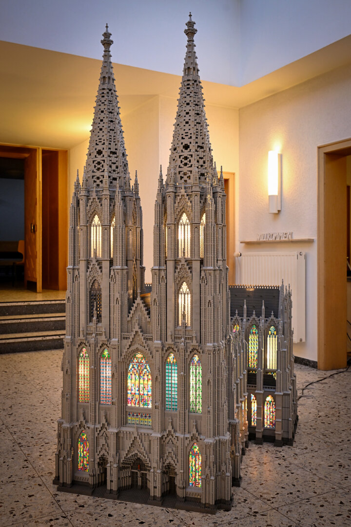 Das gigantische Modell besteht aus über 20-mal so vielen Teilen wie das größte kaufbare Legoset. Damit es überhaupt transportabel ist, lässt es sich in sechs Module zerlegen. Der Nachbau besticht aber nicht nur durch seine schiere Größe, sondern auch durch technische Raffinessen. Eine integrierte LED-Beleuchtung setzt die gotische Kathedrale in Szene. Besonders stolz ist der 70-Jährige jedoch auf das Glockengeläut: Um den Klang des „Dicken Pitter“ und der anderen Domglocken zu imitieren, modifizierte er einen Türgong und spielte den Originalsound auf.