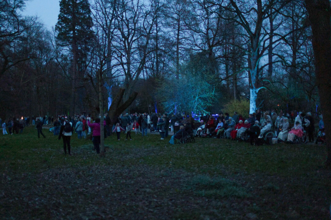 Was anfangs noch wirkte, als habe der Osterhase ein paar überdimensionale bunte Eier auf der Wiese verloren, gewann mit jeder Minute Dunkelheit an Zauber. Lichtpunkte, Installationen und Farbspiele begannen sich zu einem Gesamtbild zu fügen, das den Poensgenpark in eine neue, beinahe märchenhafte Kulisse verwandelte. Wege und Wiesen, Bäume und Blickachsen, alles schien plötzlich vertraut und doch vollkommen neu.