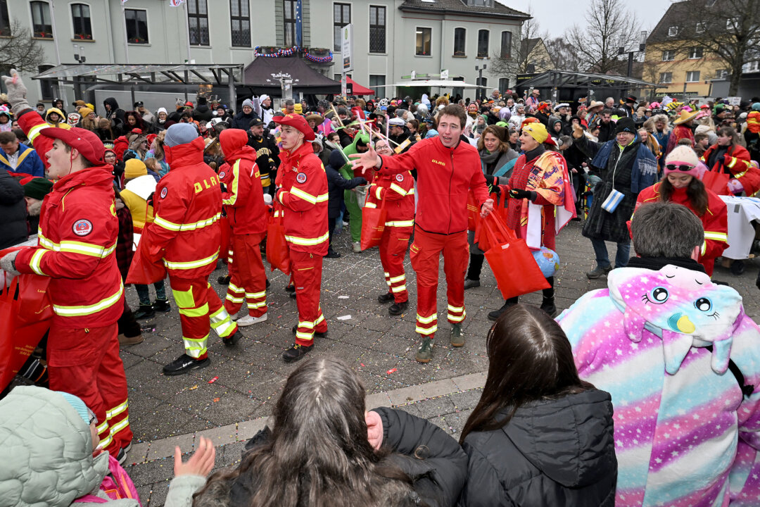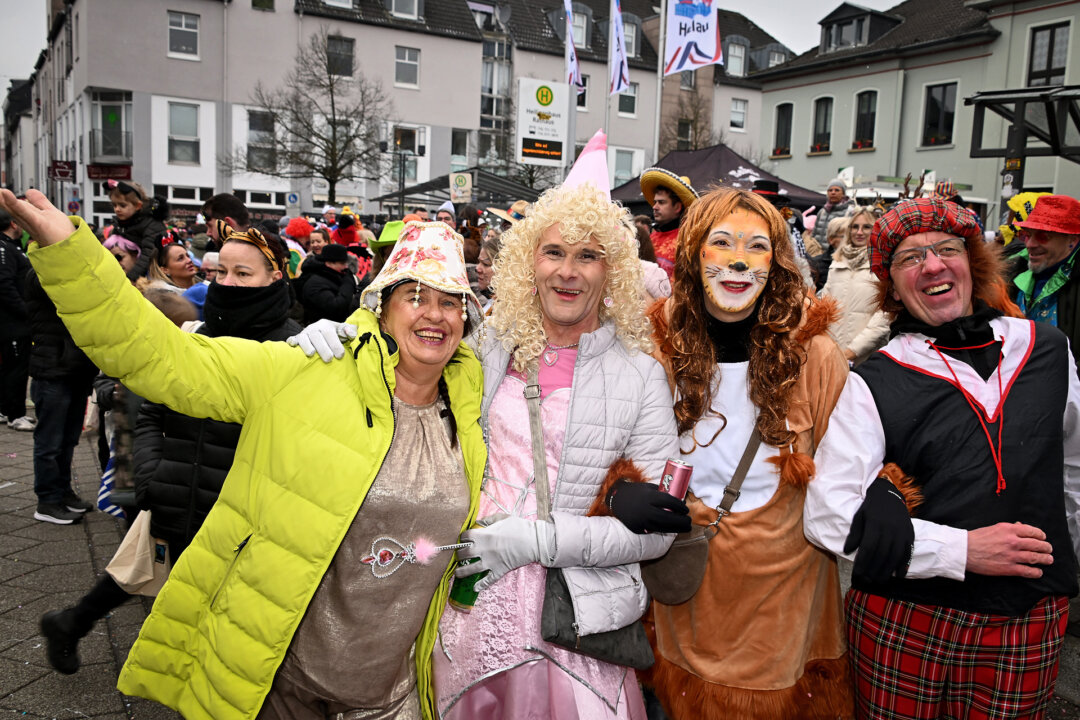 Bei knackiger Kälte hieß es für die Besucher: Entweder die Winterjacken fest verschlossen halten oder sich alternativ im Takt der Musik warm schunkeln. Das karnevalistische Zentrum bildete wie gewohnt der Rathausplatz, wo ein DJ vom Pult aus mit einem Karnevalsklassiker nach dem anderen die Stimmung ordentlich anheizte.