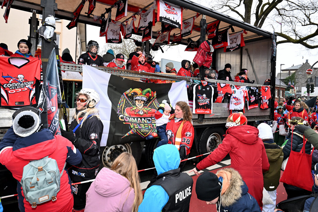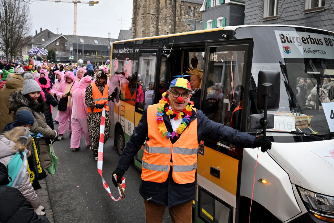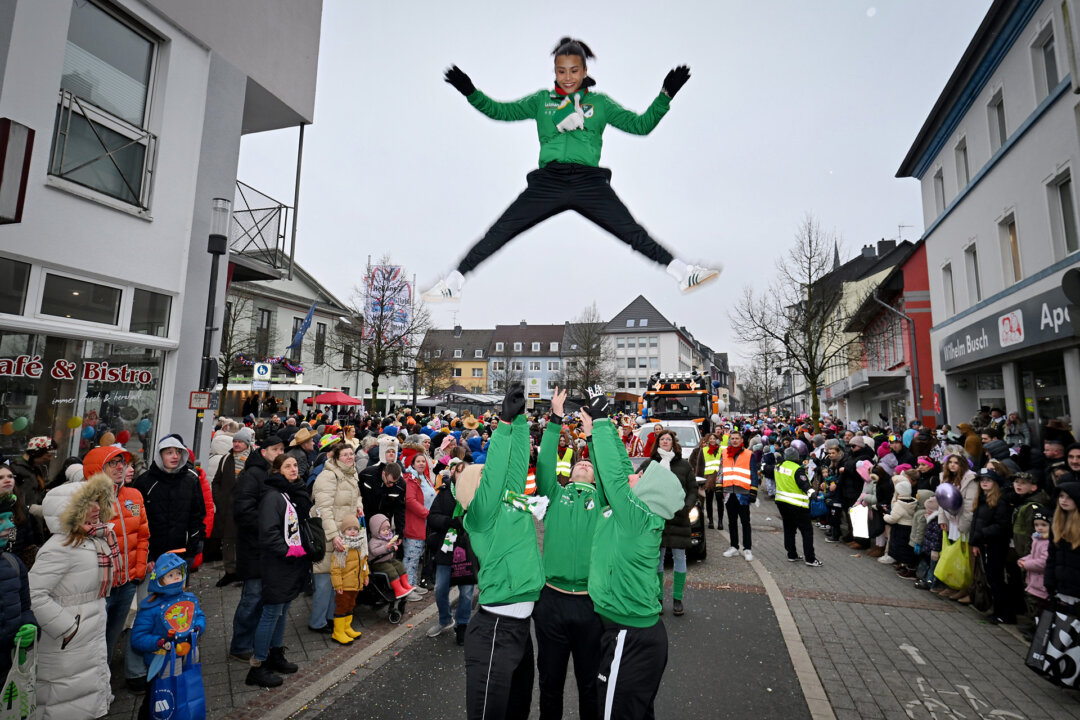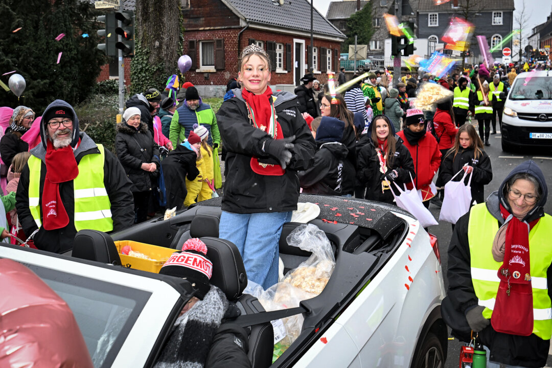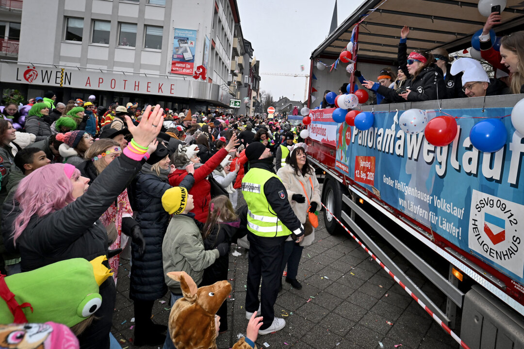 Die Vielfalt der Stadt spiegelte sich auch in den Gruppen wider: Die evangelischen Kitas “Die Arche” und “Unterm Himmelszelt” waren ebenso mit von der Partie wie der Bürgerverein Unterilp, die DLRG sowie die Sportvereine TC Grün-Weiß, TC Blau-Weiß und der SV Heiligenhaus. Auch Gäste aus der Nachbarstadt bereicherten den jecken Lindwurm: Neben den “Commanders Velbert” und der KG Grün-Weiß Langenhorst, die ihre Funkmariechen unter begeistertem Applaus in den Winterhimmel fliegen ließen, gaben sich auch die Kinderprinzessin Valeria I. sowie das Velberter Stadtprinzenpaar die Ehre. Für optische Highlights sorgten zudem die Showgarde Wuppertal, die Lebenshilfe und Pro Mobil.