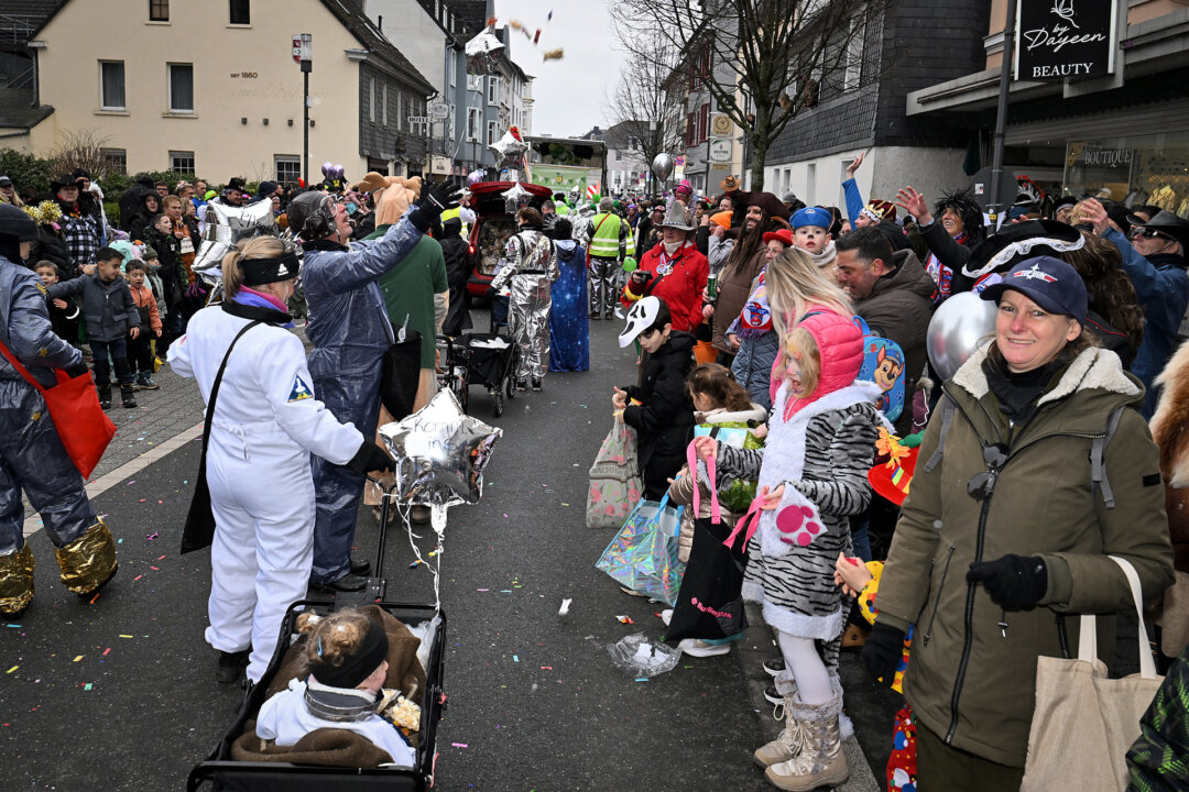 Heiligenhaus. Der Nelkensamstagszug der Heljens-Jecken hat das närrische Volk wieder mobilisiert: Tausende kostümierte Jecken säumten den Zugweg entlang der Hauptstraße.