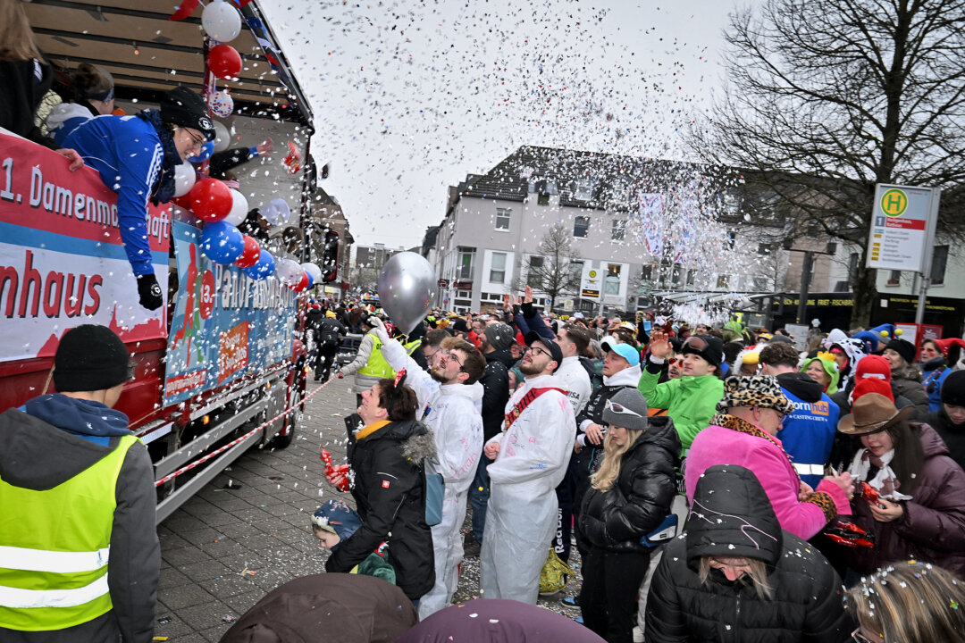 Mit diesem Nelkensamstagszug unterstrichen die Heljens-Jecken ihr 11-jähriges Jubiläum eindrucksvoll. Heiligenhaus verwandelte sich einmal mehr in eine rheinische Hochburg und feierte ein buntes Volksfest unter einem dichten Regen aus Konfetti und Kamelle.