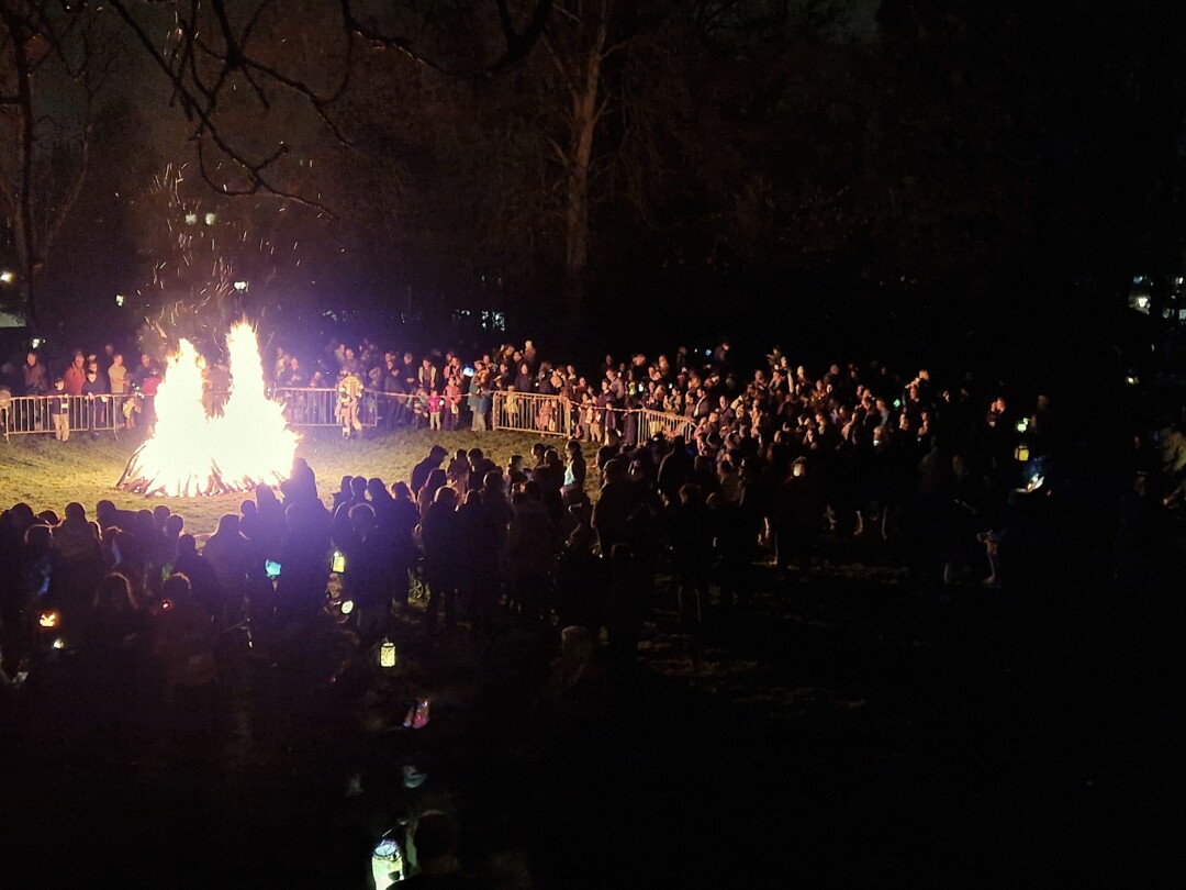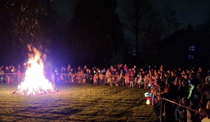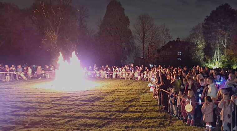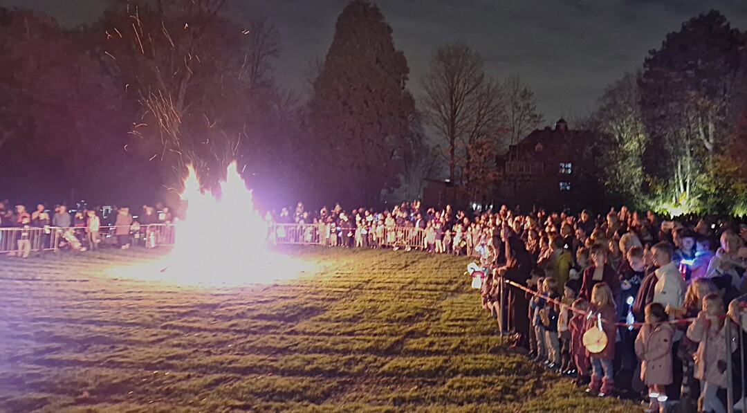 Meterhoch lodern die Flammen in den Himmel, es knistert und knackt im Wülfrather Stadtpark. Tauende Lichter schaukeln und wippen, nicht selten knapp über dem Boden. Aber wer kann seine Laterne schon ruhig halten, wenn so viel los ist.