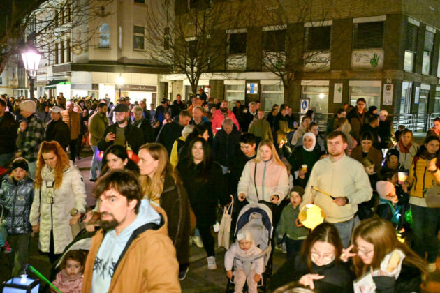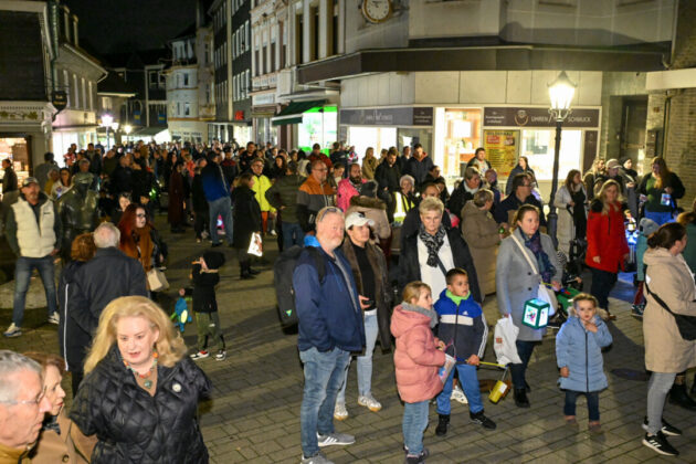 Der Martinszug in der Wülfrather Innenstadt ist ohnehin die größte Veranstaltung des Jahres in Wülfrath-Mitte. Nie kommen mehr Menschen auf einmal zusammen. Schätzungen zufolge sind das dann meisten um die 3.000 Menschen, große und kleine. Aber in diesem Jahr müssen es noch viel mehr gewesen sein. Der Menschenstrom will kein Ende nehmen.