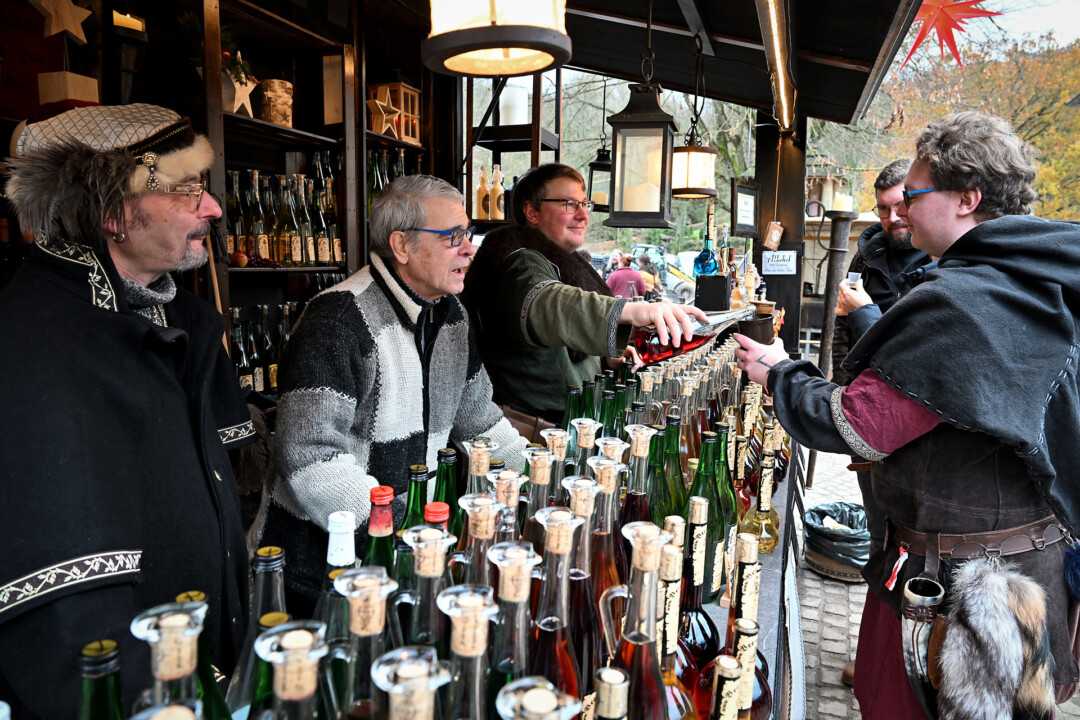 Zwischen den Showeinlagen konnten sich die Besucher mit Met und heißem Wein stärken. Für Schleckermäuler gab es außerdem Quarkbällchen, Waffeln und heiße Maronen.