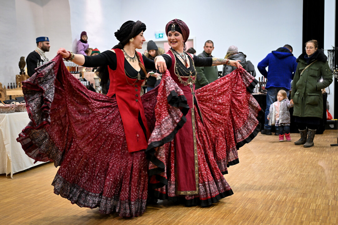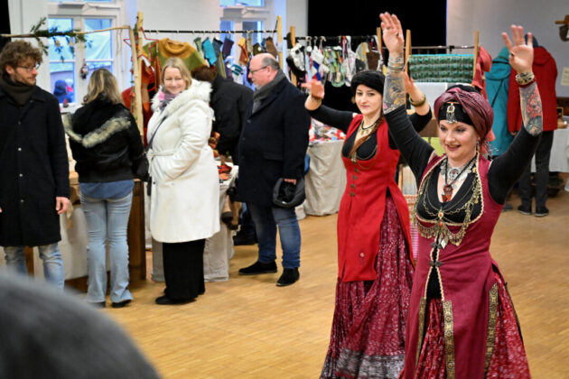 Mitten im Treiben zeigte das Duo Robia – bestehend aus Steffi Dreyer und Angelina Maron – einen Ausschnitt aus ihrem Tanzprogramm. Ihr Stil nennt sich Tribal Fusion, eine eigene Tanzrichtung mit orientalischen und indischen Einschlägen, die die beiden mit Bauchtanzeinlagen garnieren.