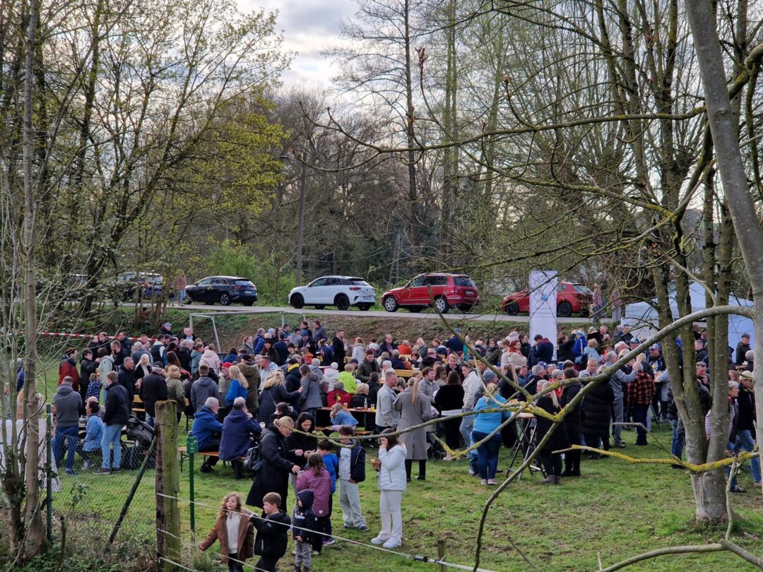 Und so wanderten sie herbei, die Frauen und Männer, Familien mit Kindern, oder sie kamen mit dem Wagen, so dass alsbald rund um den Bolzplatz kein freies Parkpläzchen mehr zu finden war.
