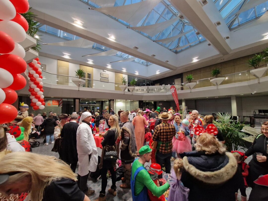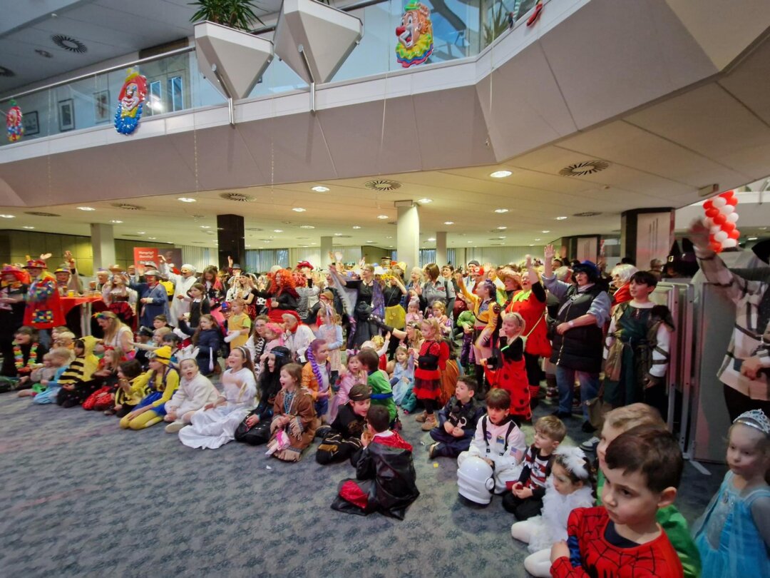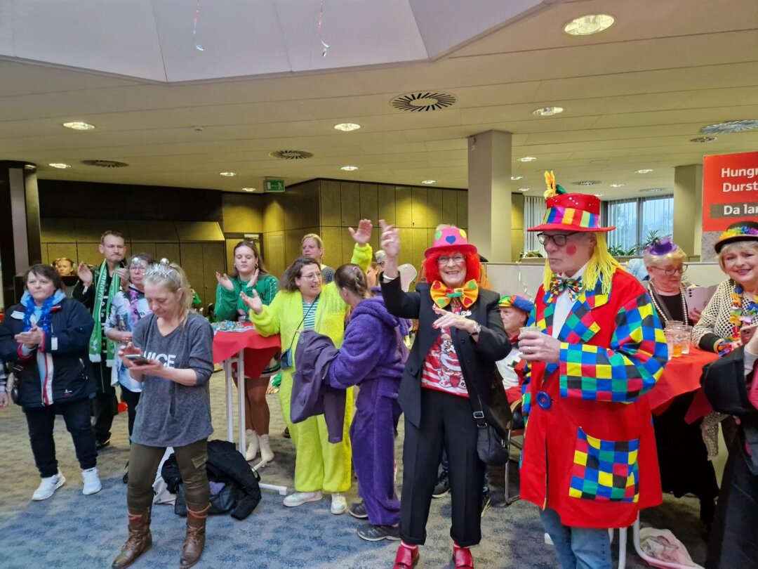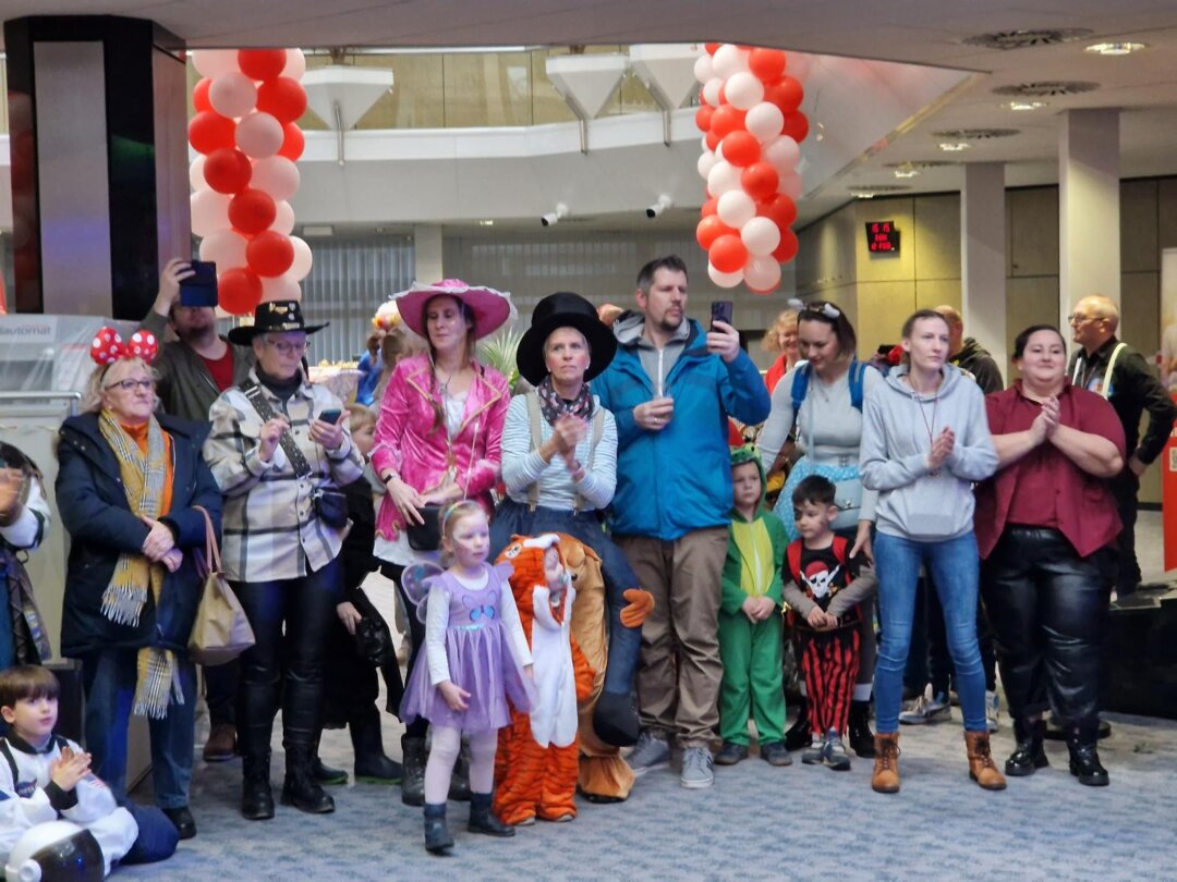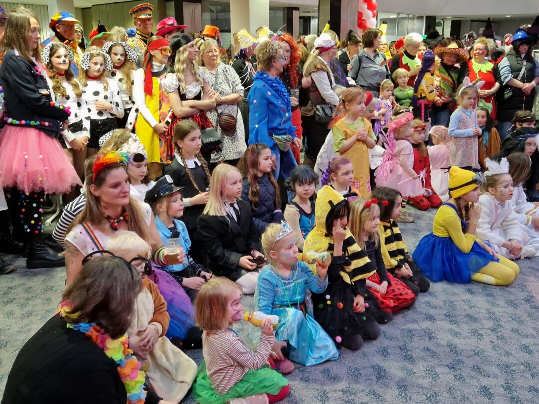 Das Duo „Albatros“ spielte den Klassiker „Wenn et Trömmelche jeht“ zum Einzug der Närrinnen und Narren, den Refrain „Kölle alaaf“ umgetextet auf „Wülfrath helau“. Dann stürmten die Kostümierten herbei, um sich einen guten Platz in der Kassenhalle zu sichern.