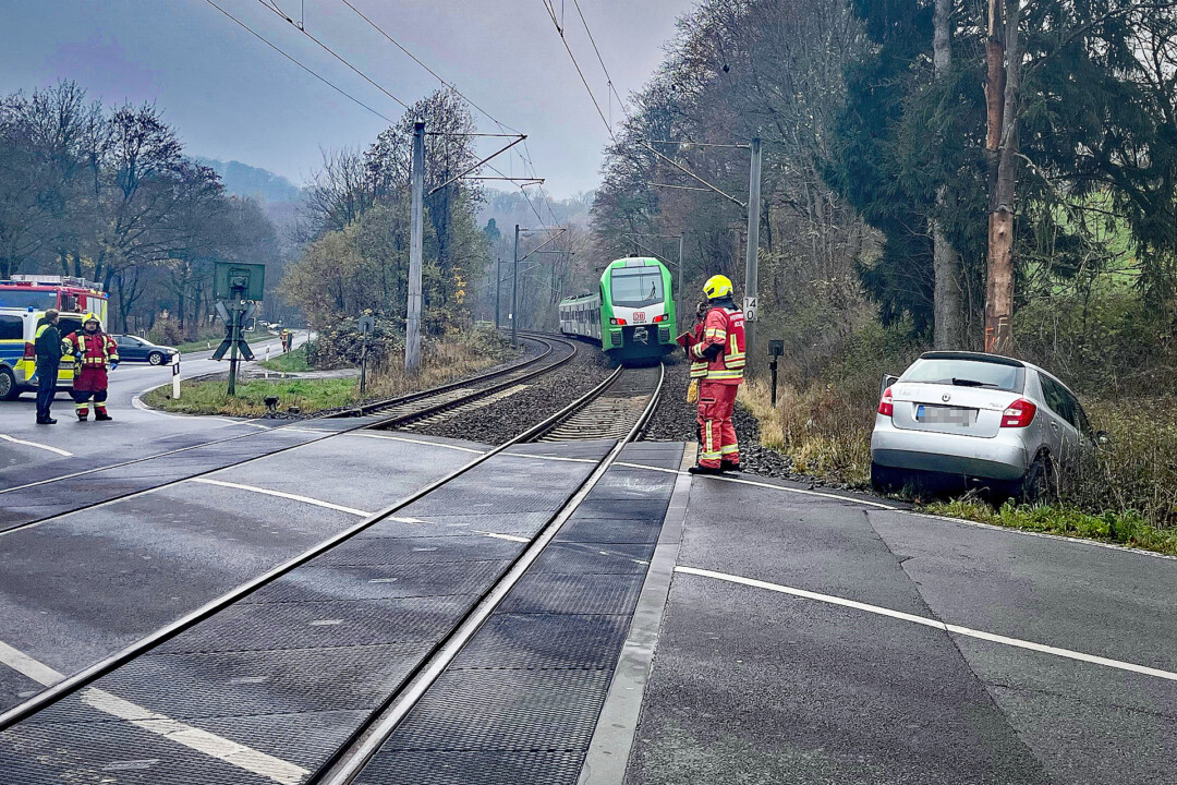 Die Unfallbeteiligten hatten augenscheinlich mehrere Schutzengel: So wurden weder die Autofahrerin, noch die Insassen im Zug verletzt. Alarmierte Rettungskräfte der Velberter Feuerwehr brachten die 78-Jährige dennoch vorsorglich für weitere Untersuchungen in ein Krankenhaus.
