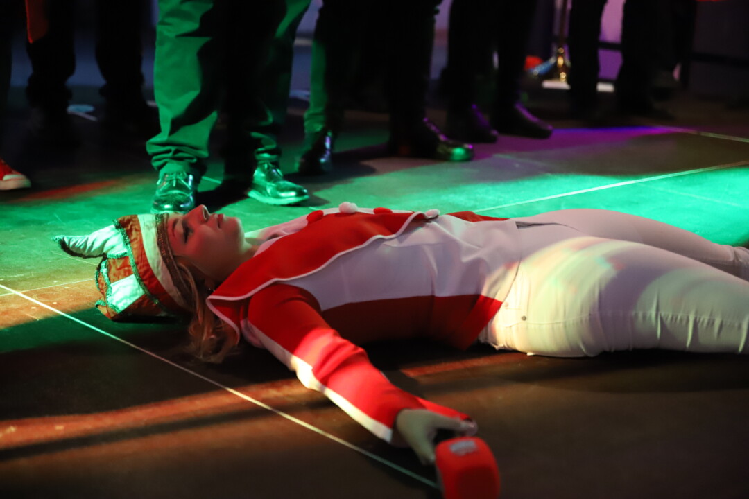 Im vergangenen Jahr hatte sie bekanntgegeben, sie habe “keine Lust mehr darauf, der Hoppeditz zu sein”. “Wir müssen daher in diesem Jahr so laut sein wie nie zuvor”, appellierte Nikolaus an die Gäste. Die weckten stimmgewaltig, doch niemand kam. Stattdessen bahnte sich Kathi Hochmuth den Weg zur Bühne, im Alltagsdress, ohne die bekannte rot-weiße Uniform stand sie da. “Ich bin doch gar nicht darauf vorbereitet heute. Ich habe die Sachen gar nicht an”, erklärte Hochmuth. Nur, um Momente später im bekannten Kostüm der Velberter Hoppeditzin auf der Bühne zu stehen – und das letzte Mal ging in die Verlängerung.