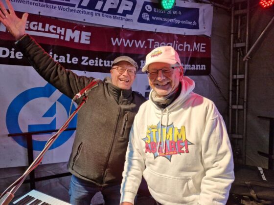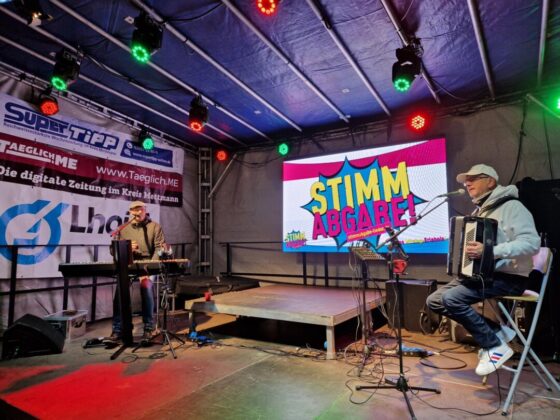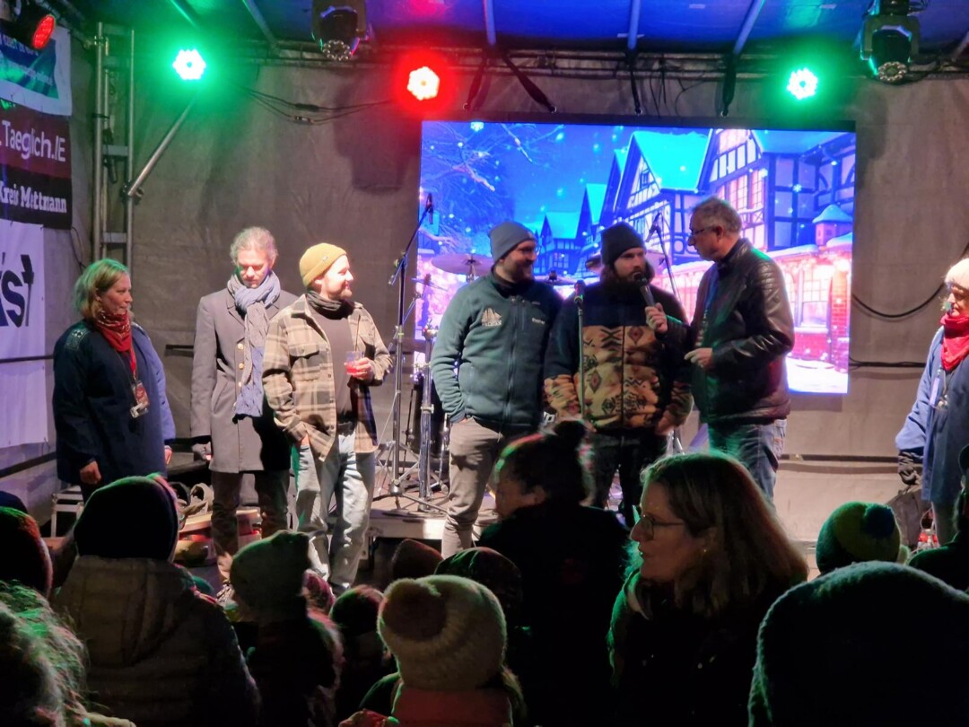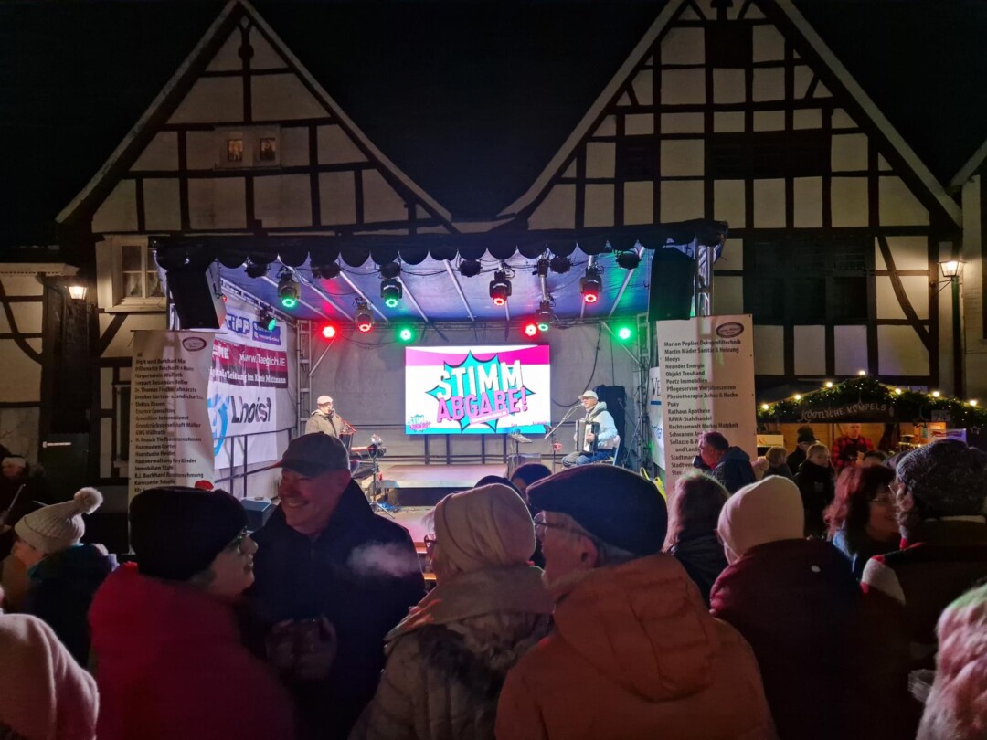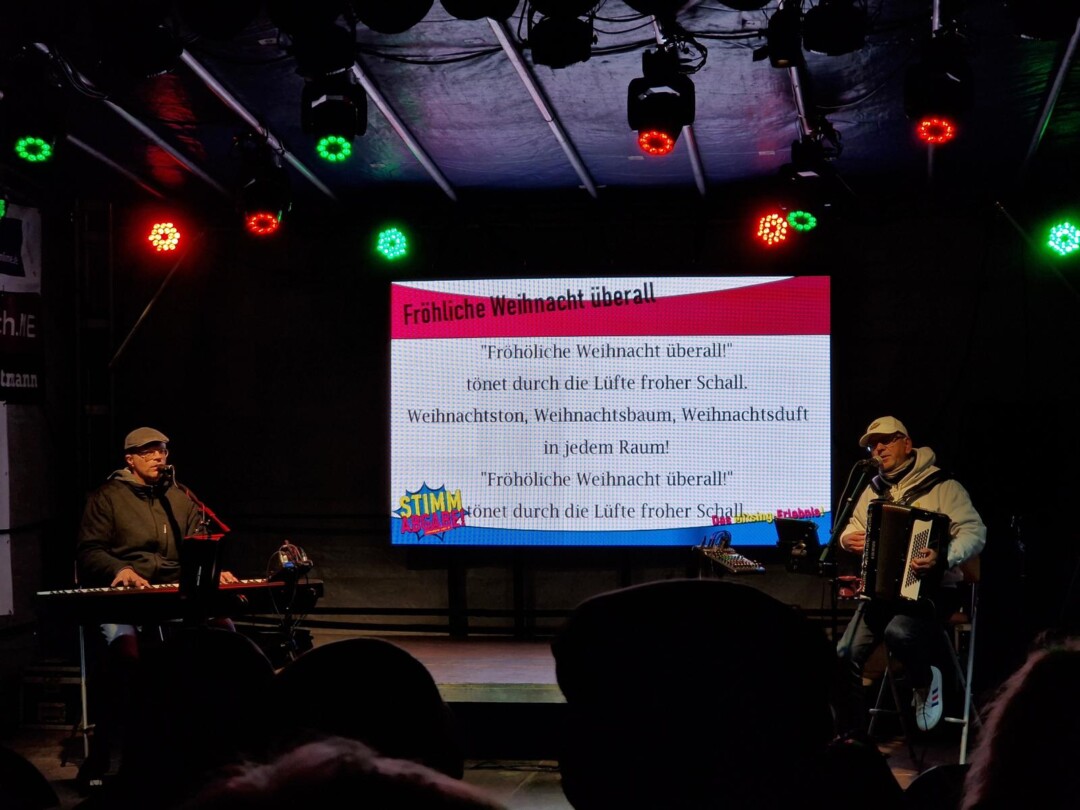 Diesmal allerdings blieb die Stimmabgabe vom Regen verschont, anders als im Vorjahr, sodass sich viele Besucherinnen und Besucher vor der Bühne versammelten, um gemeinsam mit den beiden Künstlern weihnachtliche Lieder zu singen.