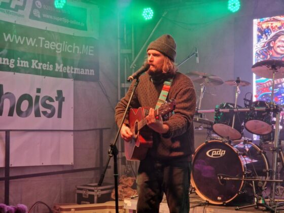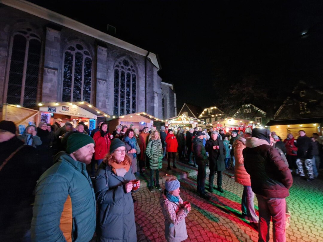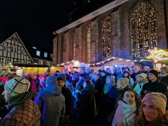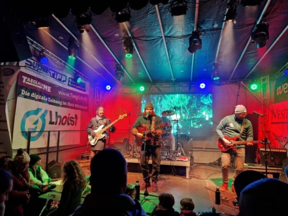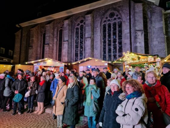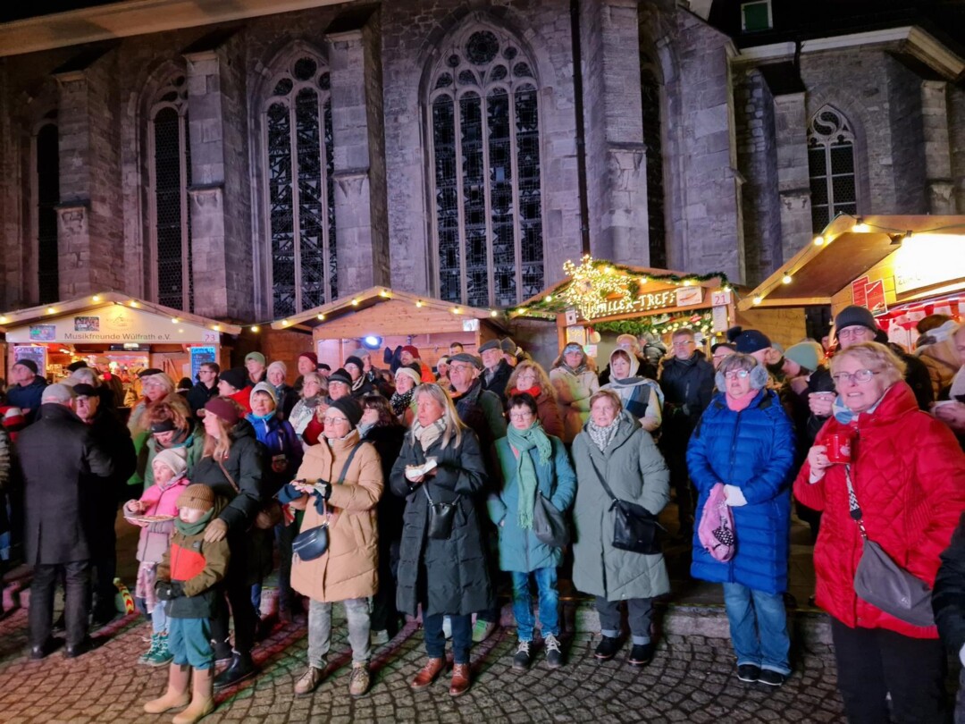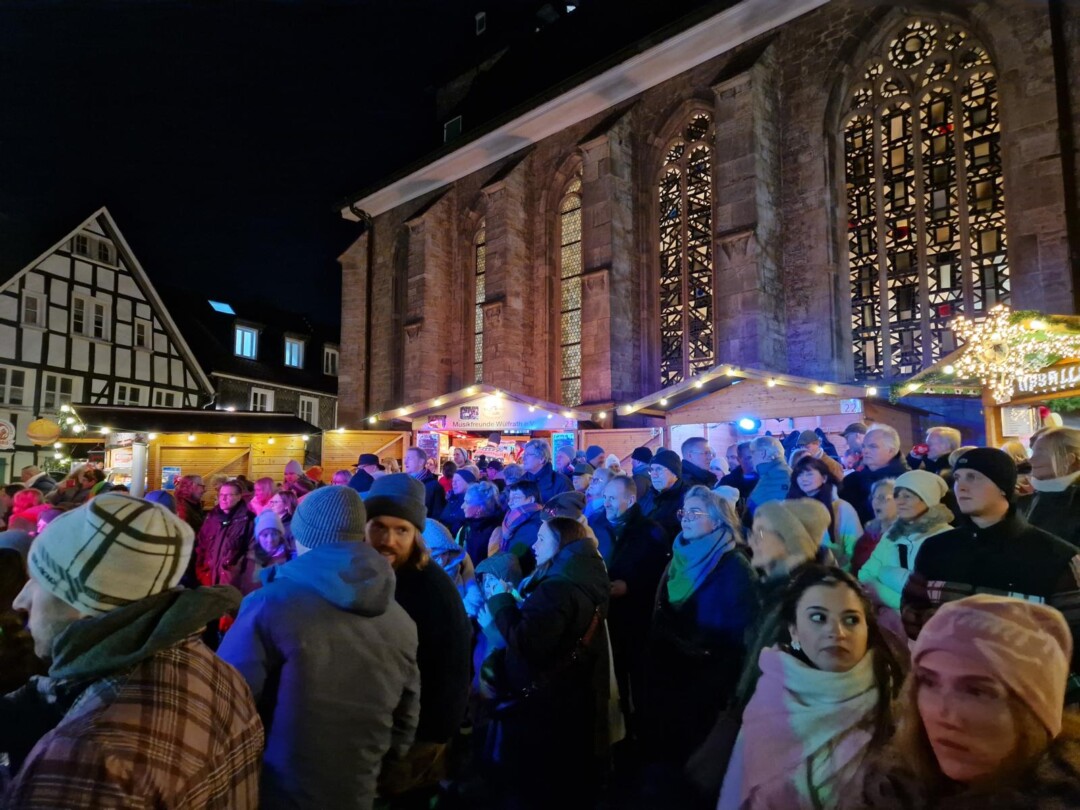 Diesmal allerdings blieb die Stimmabgabe vom Regen verschont, anders als im Vorjahr, sodass sich viele Besucherinnen und Besucher vor der Bühne versammelten, um gemeinsam mit den beiden Künstlern weihnachtliche Lieder zu singen.